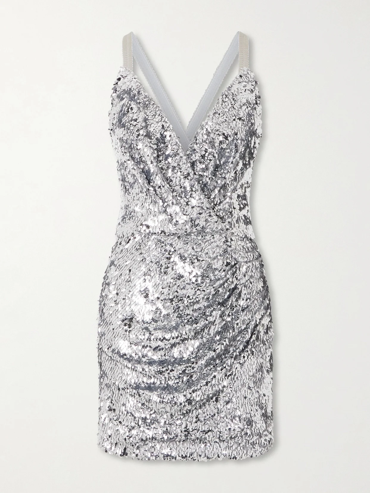 Dolce & Gabbana's dress will make you the life of the party. Made from silver tulle, it's drenched in illuminating sequins and has a plunging V-neckline. We love the crisscross back and gentle ruching.