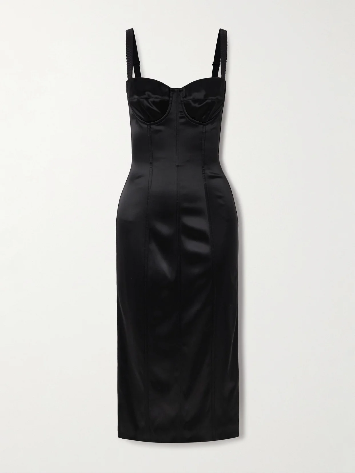 Dolce & Gabbana's undeniably chic midi dress has a bustier bodice with gently structured boning and underwired cups for lift and support. It's made from lustrous satin and has elongating seams.
