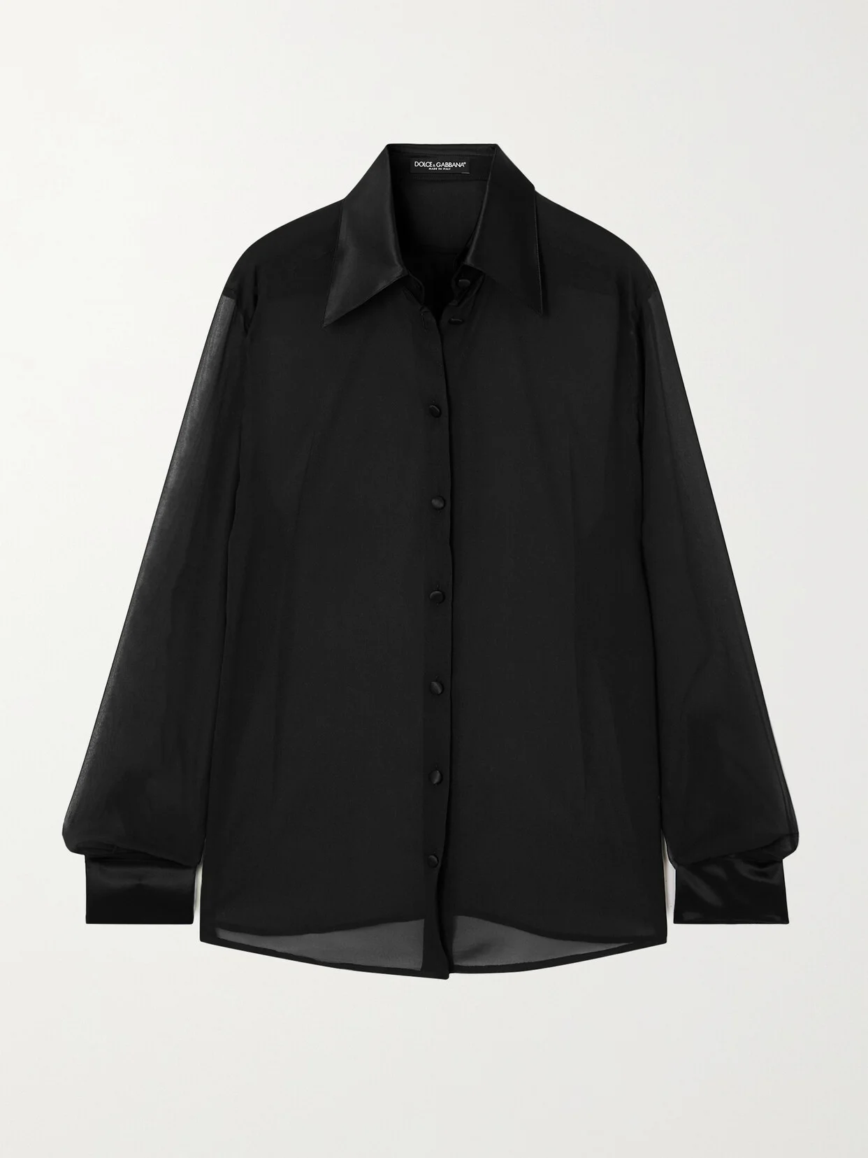 Striking in its sheerness, Dolce & Gabbana's shirt debuted on the glamorous Fall '23 runway. It's been made in Italy from lightweight silk-chiffon with a satin collar and cuffs for contrast. Underpin yours with romantic lace lingerie and paint a vampy lip, just as the designers intended.