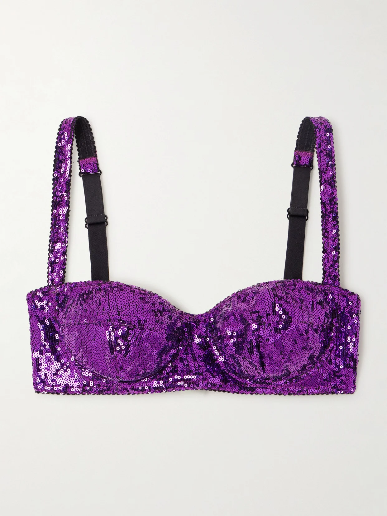 Dolce & Gabbana's bra is sewn with shimmering sequins that give off a radiant glow. Made from tulle that's lined with satin for comfort and coverage, it has a sultry balconette shape and straps framing the wide neckline. Wear yours with the matching briefs.