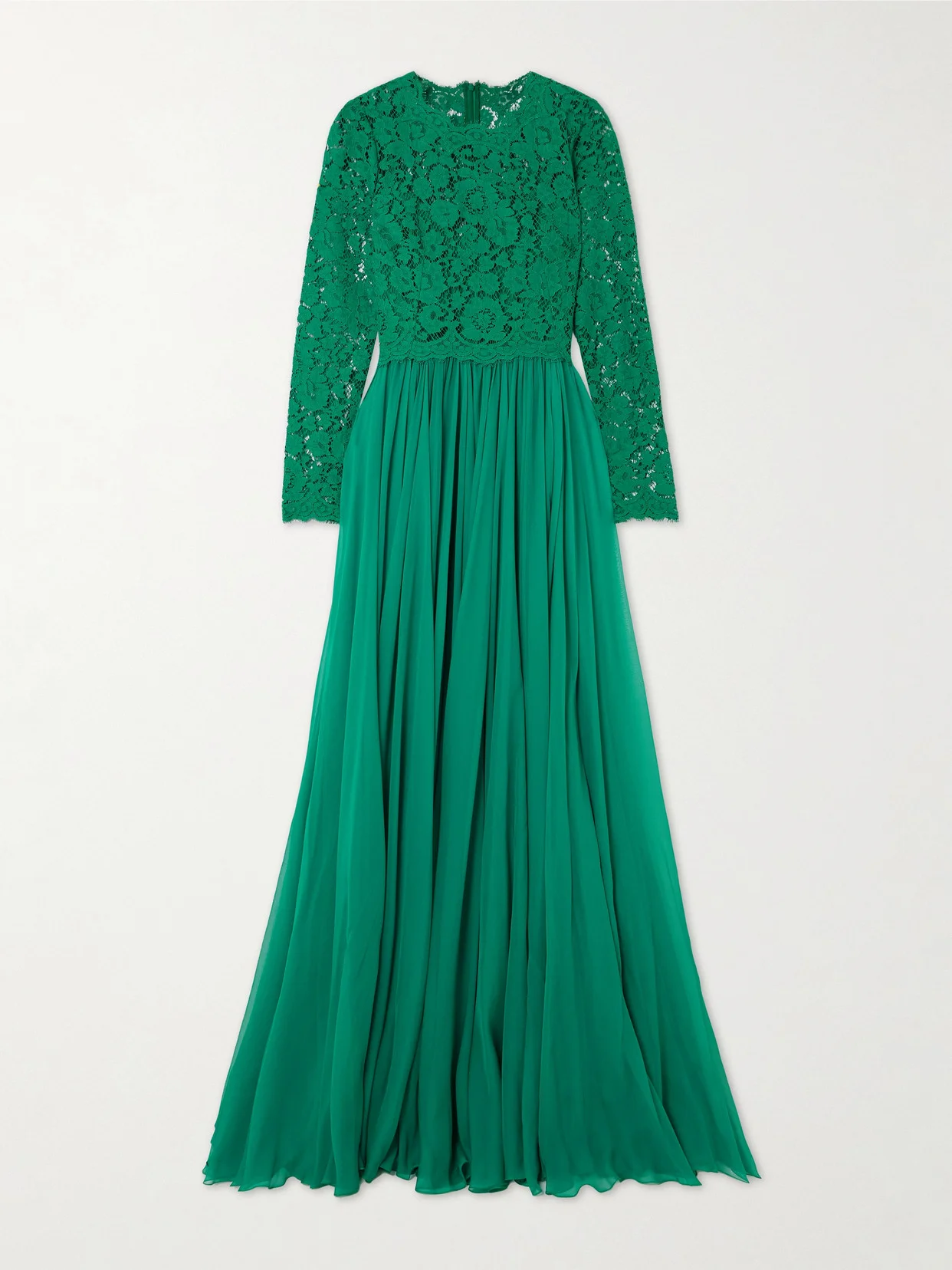 Silk-blend Lace And Pleated Chiffon Gown