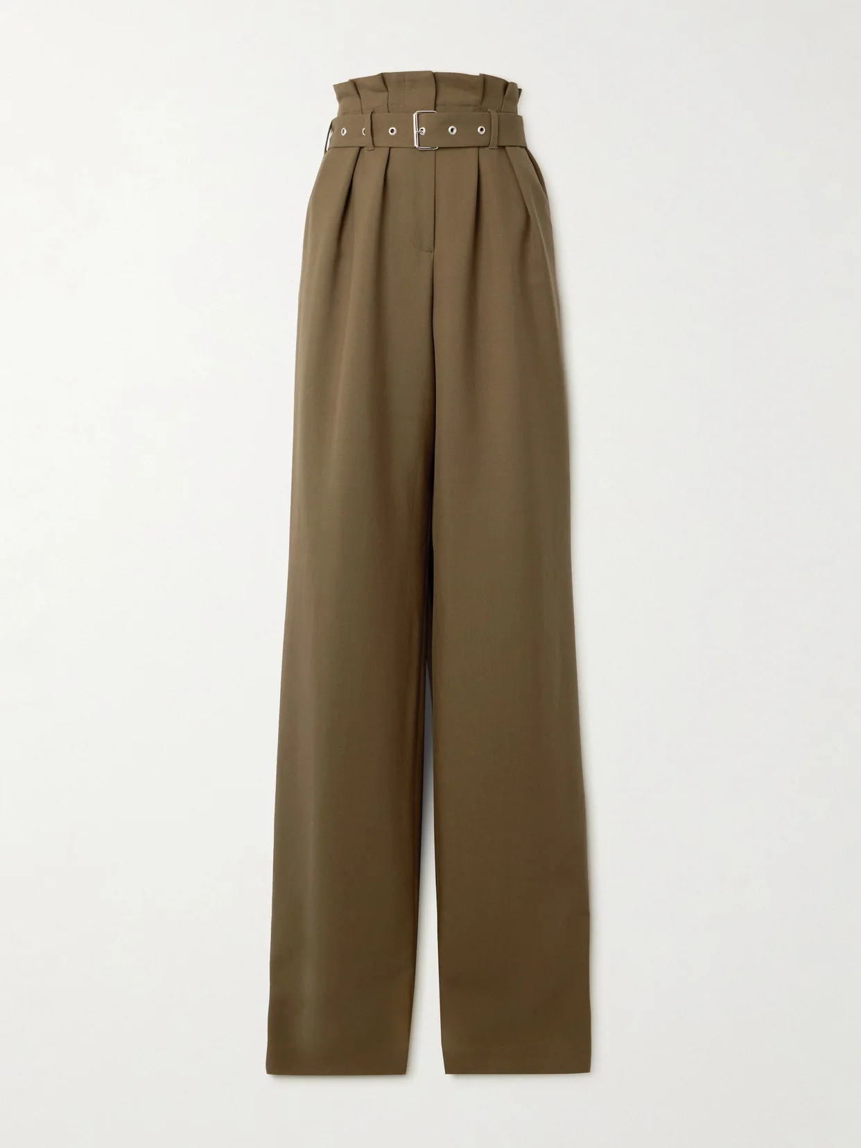 Belted Pleated Wool And Mohair-blend Jersey Wide-leg Pants