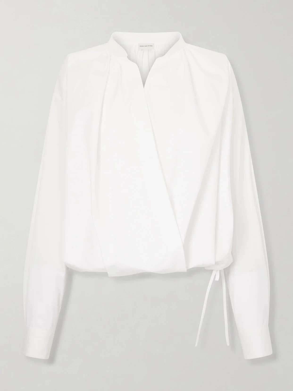 Dries Van Noten's shirt is so elegant and classic. Cut from crisp cotton-poplin, it has a wrap design with adjustable ties at the waist. We love it with jeans or tailored pants.