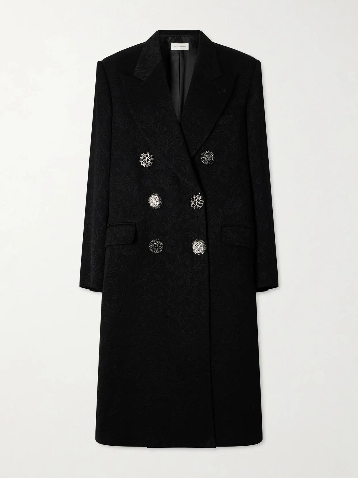 Dries Van Noten's coat highlights the label's talent for elevating classic tailoring through subtle texture and detail. Made from tonal matelasse, it has a double-breasted silhouette accented by ornate, mismatched buttons that lend the refined design a distinctive finish.
