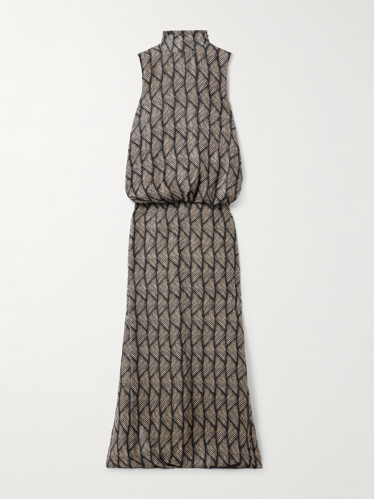 It's the stunning devore-velvet fabric that makes Dries Van Noten's gown so special. Patterned with layered waves, it has a high-neck bodice that folds over at the waist, so it looks like perfectly put-together separates. Wear yours with point-toe mules.