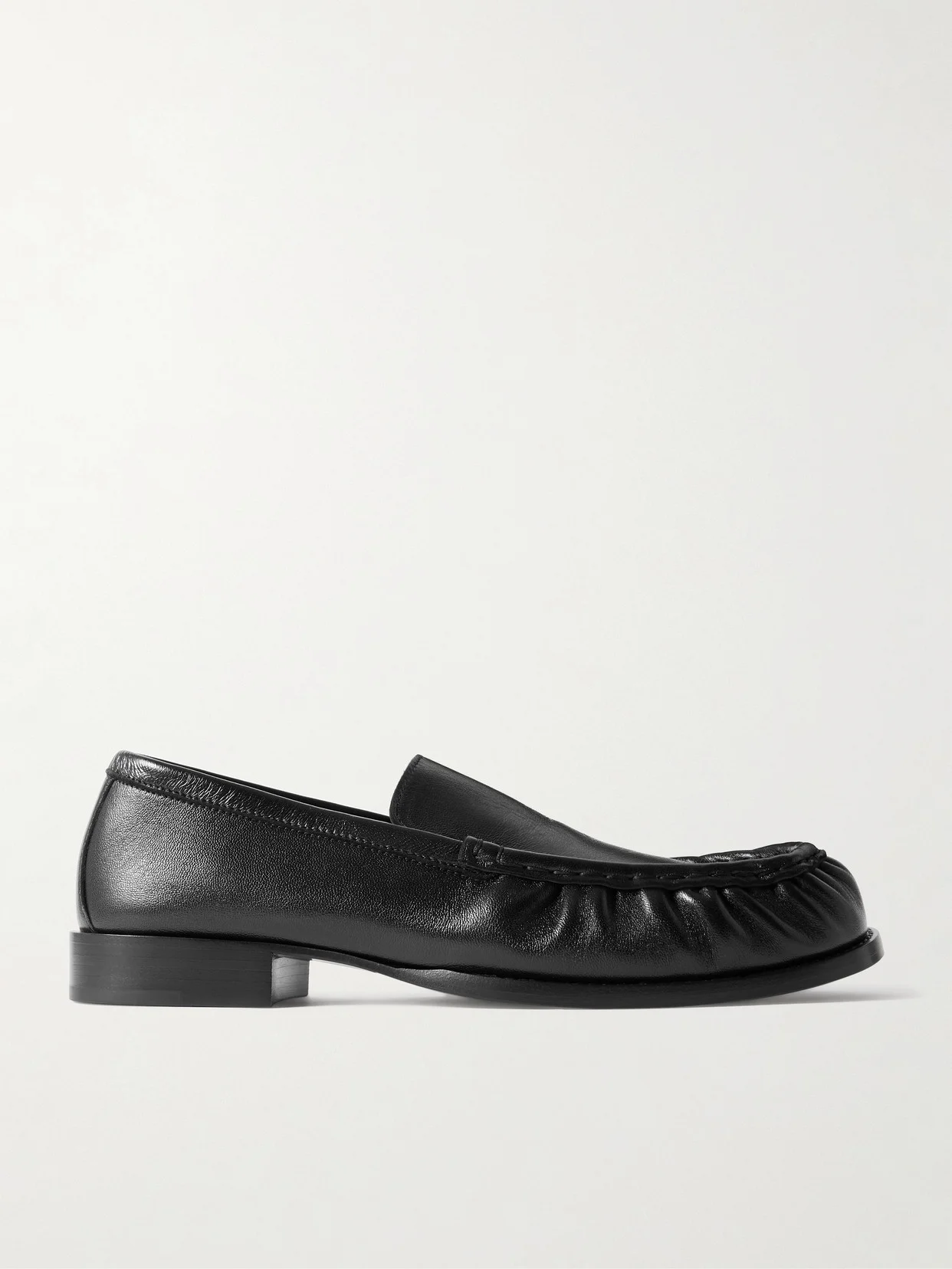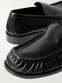 Dries Van Noten's loafers are understated and minimal, allowing the quality craftsmanship to be the main focus. They've been made in Italy from smooth black leather that's gathered along the rounded toes and have stacked heels.