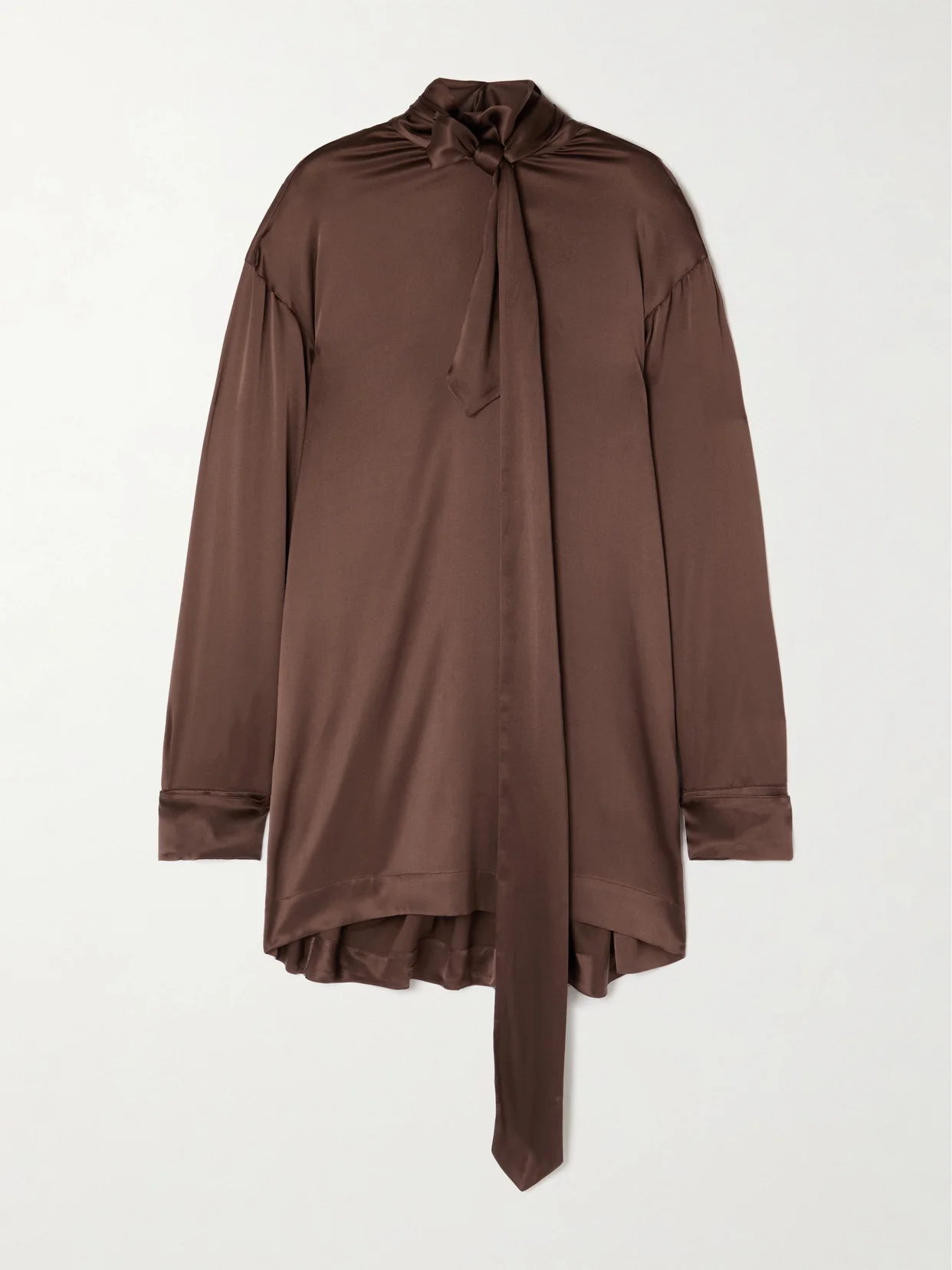 Dries Van Noten's blouse is made from smooth silk-blend satin that enhances the warm brown shade so nicely. It has a relaxed fit and languid pussy-bow ties you can knot once and let drape down the front or style into a larger bow.