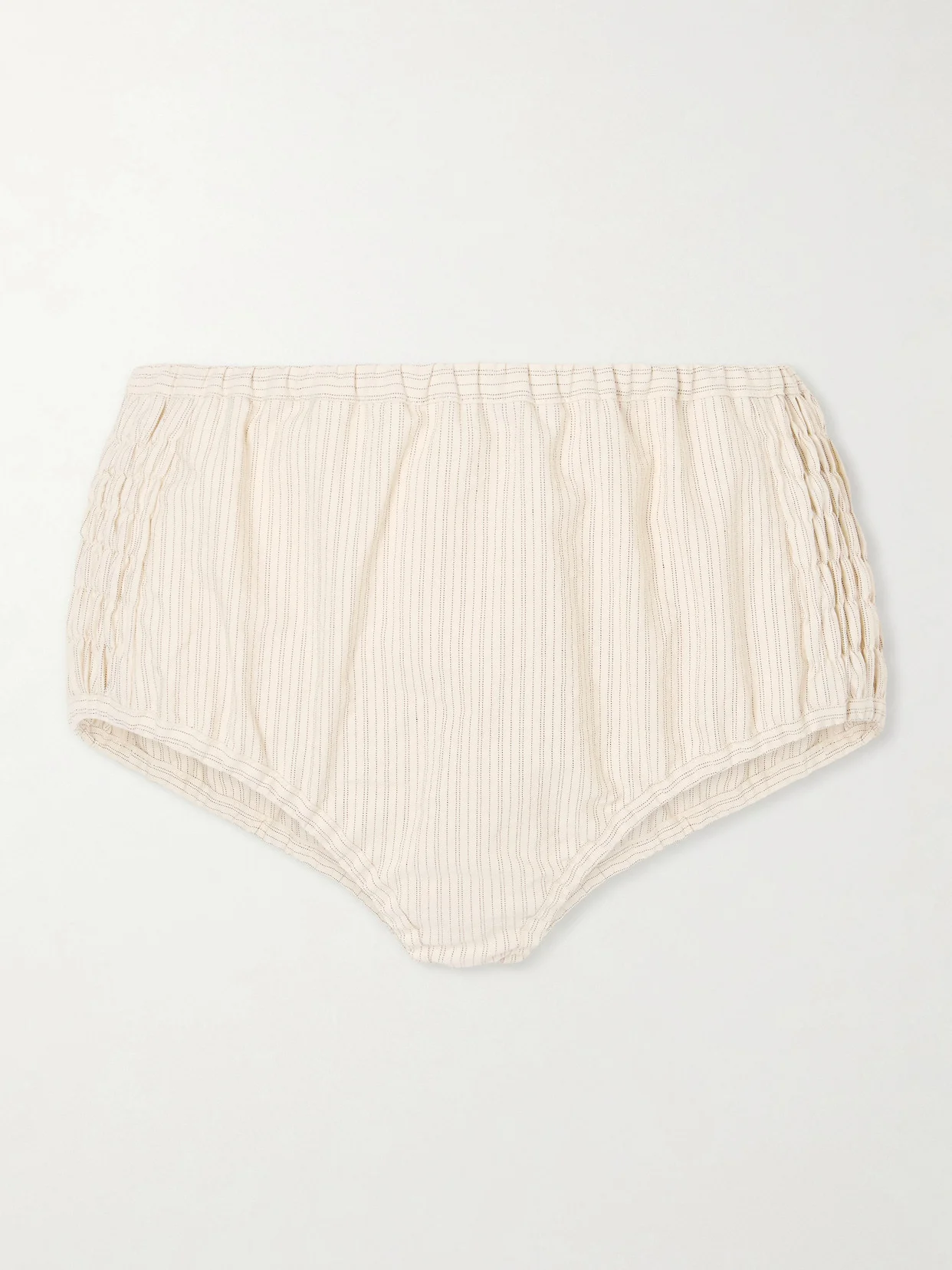 Part of Dries Van Noten's Spring Summer '26 collection, these mini shorts are designed to layer effortlessly beneath fabulous sheer pieces. Made from lightweight striped cotton-blend, they're cut to a fitted silhouette with delicate ruching along the seams.