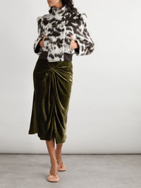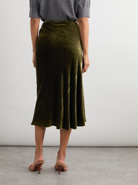 The historic interiors of Paris' opera house Palais Garnier inspire Dries Van Noten's Fall '25 collection. This skirt is made from velvet and twisted at the front, which creates beautiful folds through the length. Style yours with sandals and a chic top. Size & Fit - Fits true to size, take your normal size - Midi-length, designed to be worn at the waist - Mid-weight, non-stretchy fabric - Model is 180cm/ 5'11" and is wearing a FR 36 Model measurements: - Bust: 84cm/ 33" - Waist: 62cm/ 24.5" - Hip: 90cm/ 35" Details & Care - Green velvet - Concealed hook and zip fastening at side - 80% viscose, 20% silk; lining: 100% viscose - Partially lined - Dry clean