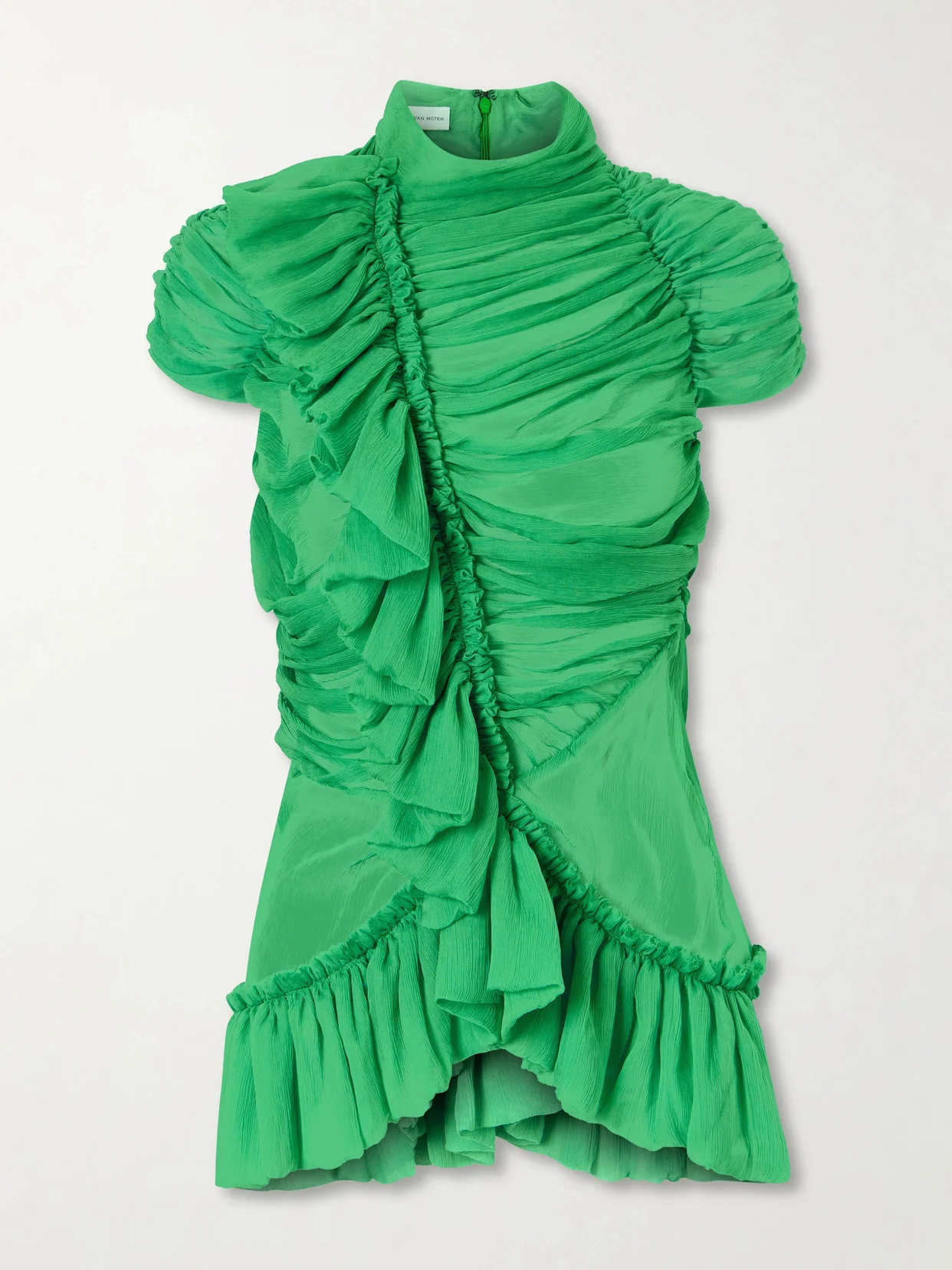 Dries Van Noten has a distinctive eye for texture, contrast and detail-driven design. This blouse is composed of folded and ruffled silk-chiffon, with a ruched seam through the center for shape. Pair it with the matching skirt, as styled on the runway.