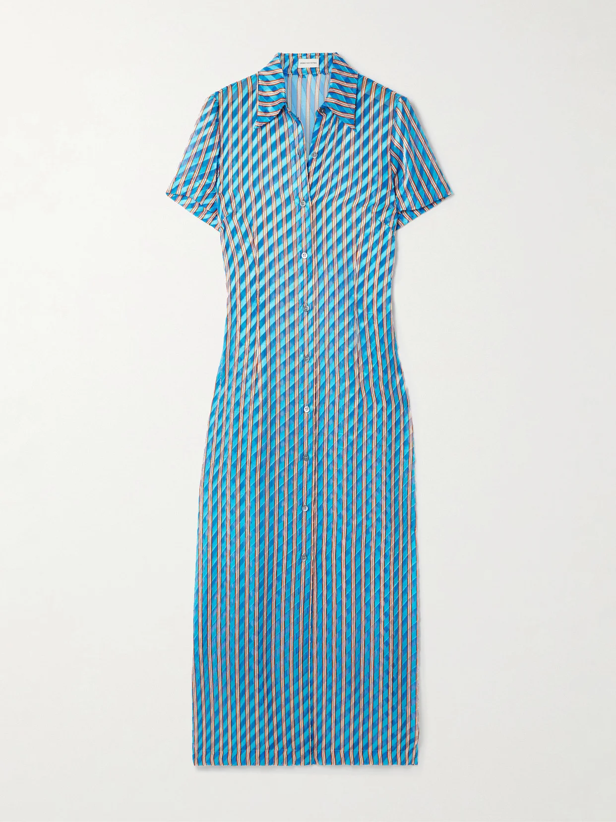 Dries Van Noten is famed for marrying color, texture and pattern so artfully. This shirt dress is made from silk-rich devore-satin with a colorful striped pattern.