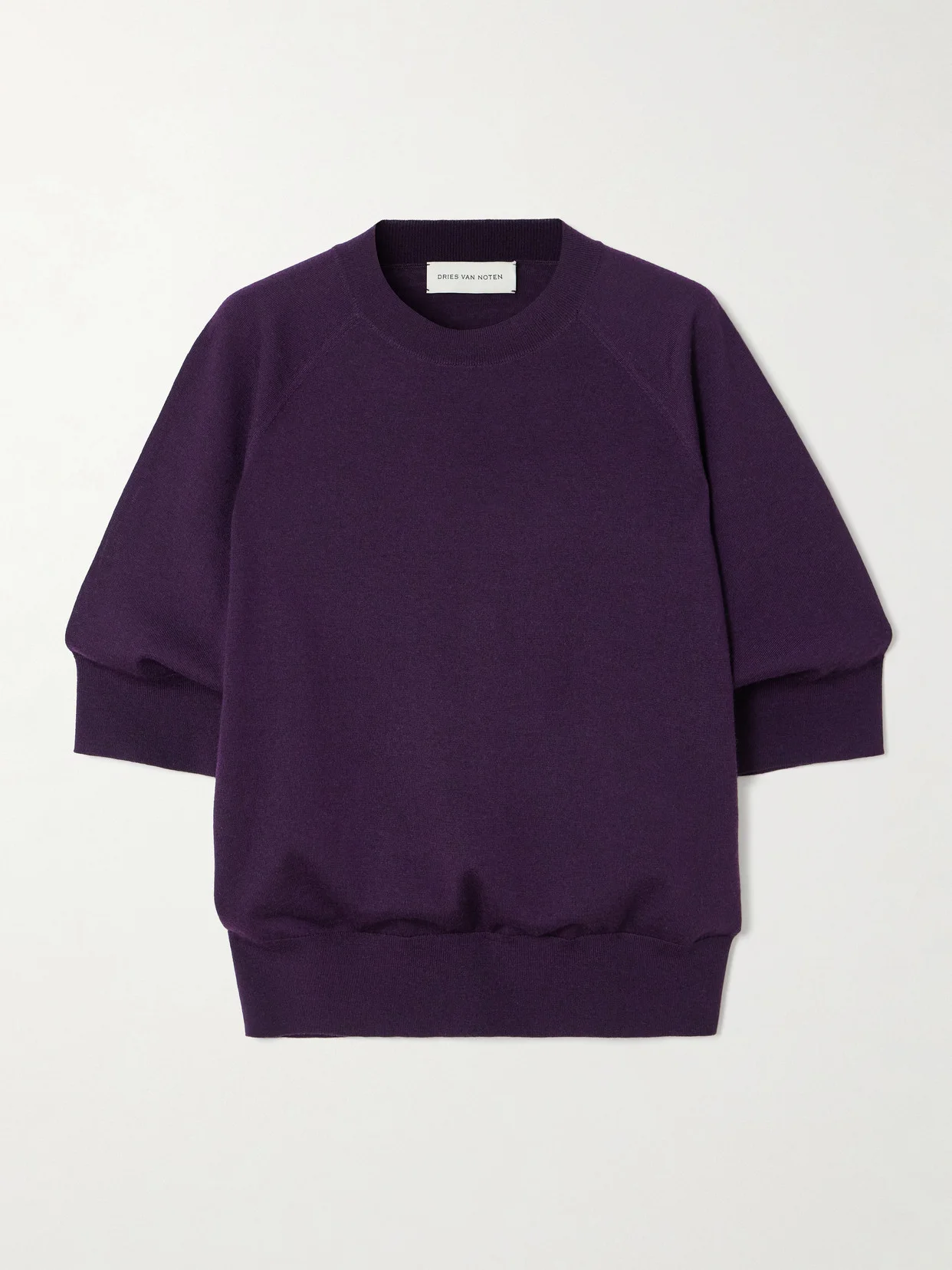 Dries Van Noten's eye for fit and form is visible in the relaxed shape of this short-sleeve sweater. It's knitted from fine wool and ribbed at the edges to define the fit. Style it solo with a midi skirt or layer it over a sporty polo shirt.