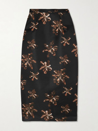 Pencil skirts are very much back in the spotlight this season. Emilia Wickstead's 'Lorelei' version is made from matte-satin printed with floral embellishments. Style yours with a cropped cardigan or tucked-in top to showcase the high waist. Size & Fit - Fits true to size, take your normal size - Midi-length, designed to be worn at the waist - Mid-weight, non-stretchy fabric - Model is 177cm/ 5'10" and is wearing a UK 8 Model measurements: - Bust: 77cm/ 30.5" - Waist: 62cm/ 24.5" - Hip: 88cm/ 34.5" Details & Care - Black, tonal-brown and white satin - Concealed zip fastening along back - 100% polyester - Fully lined - Dry clean