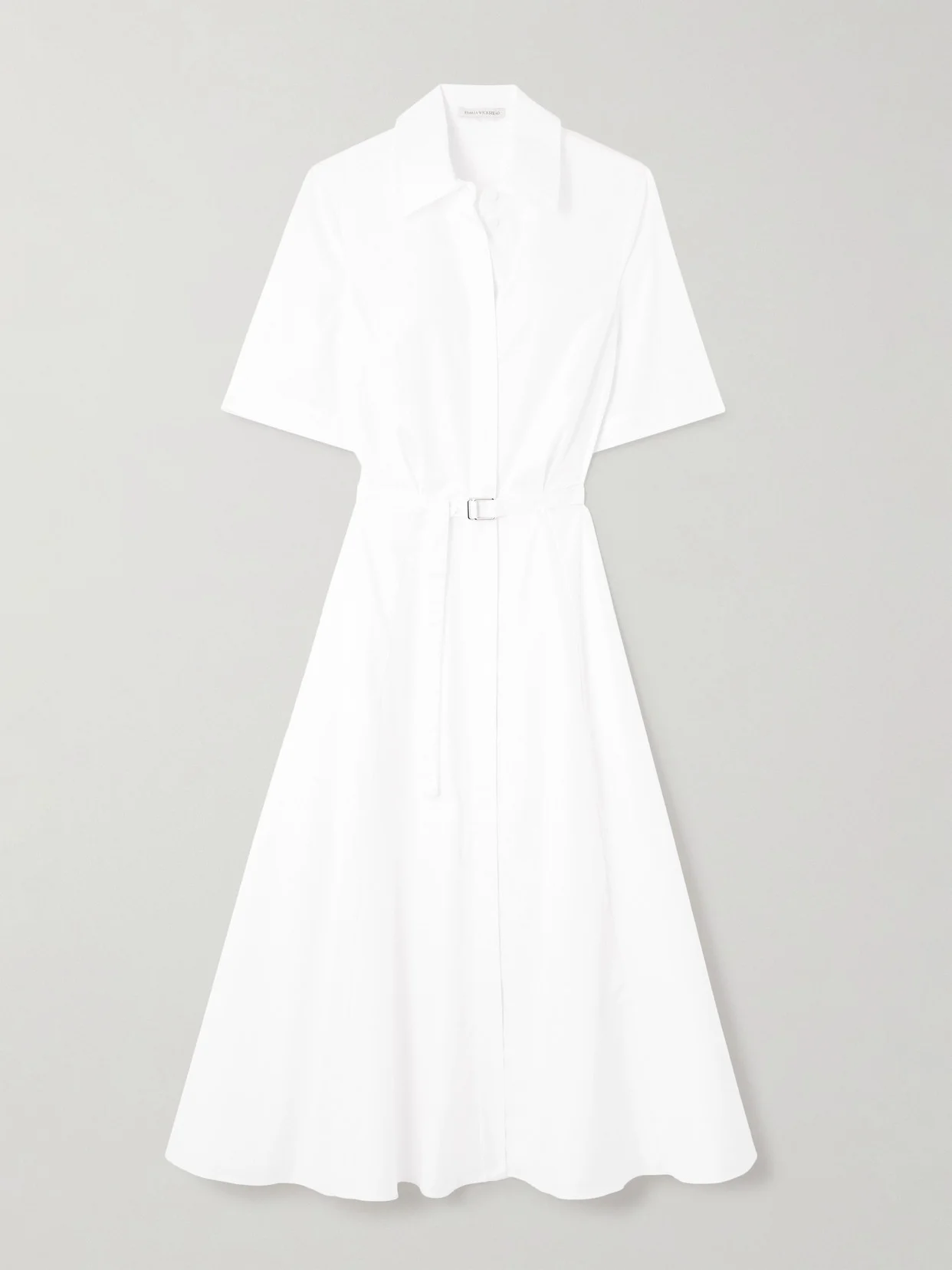 A shirt dress is an essential part of a beautiful summer wardrobe. Made from crisp cotton-poplin, Emilia Wickstead's 'Rubie' midi has a pintucked collar, streamlined placket and belted waist.