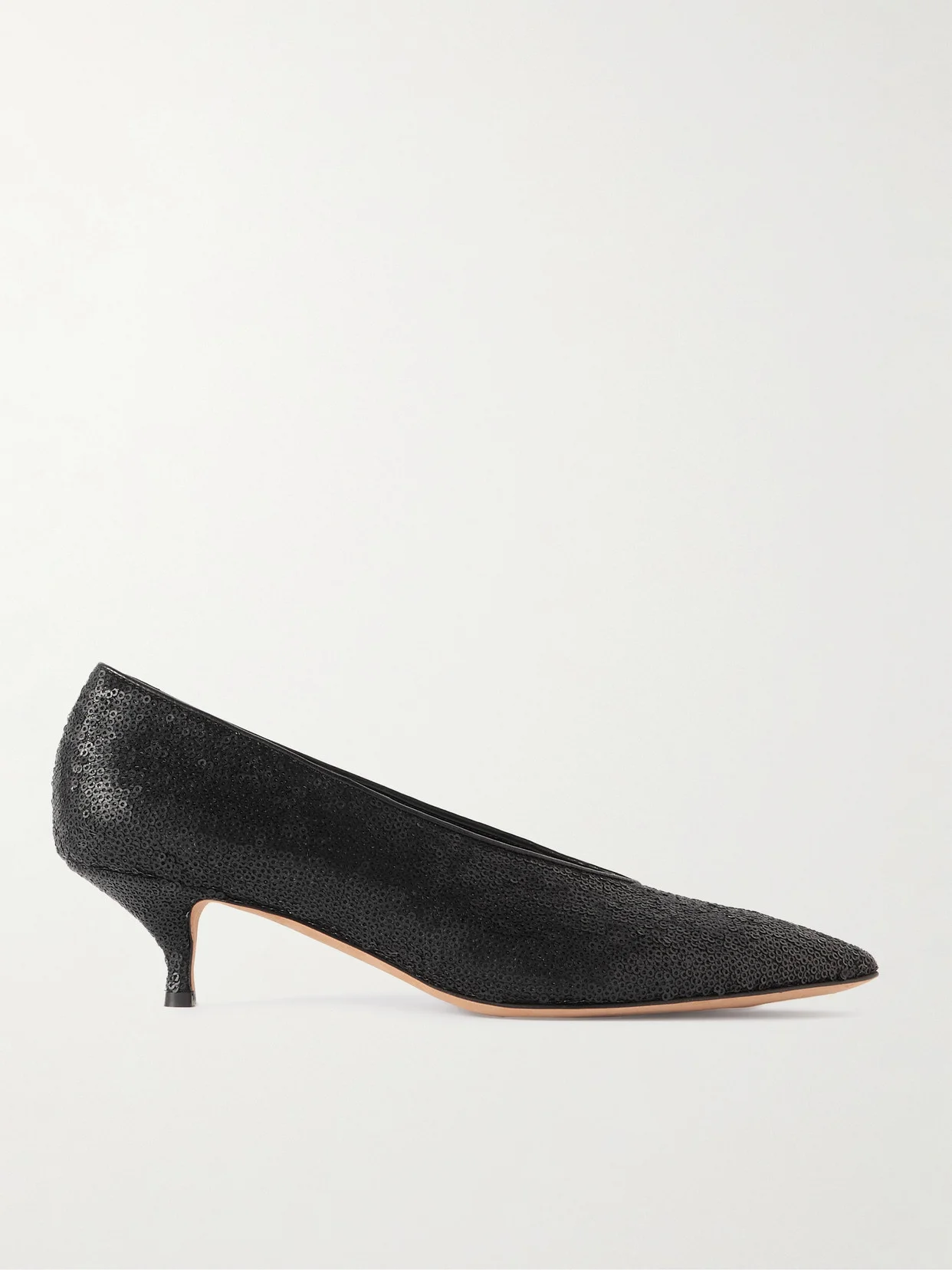 A modern take on classic kitten heels, Emme Parsons' point-toe ‘Veneto' pumps are designed with a high V-cut vamp and set on a wearable 35mm heel. They've been crafted in Italy from supple leather and covered with matte sequins that offer plenty of texture and a subtle shimmer.