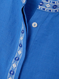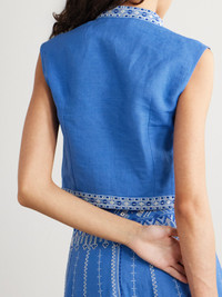 Andorra cropped embroidered linen and cotton-blend top Blue