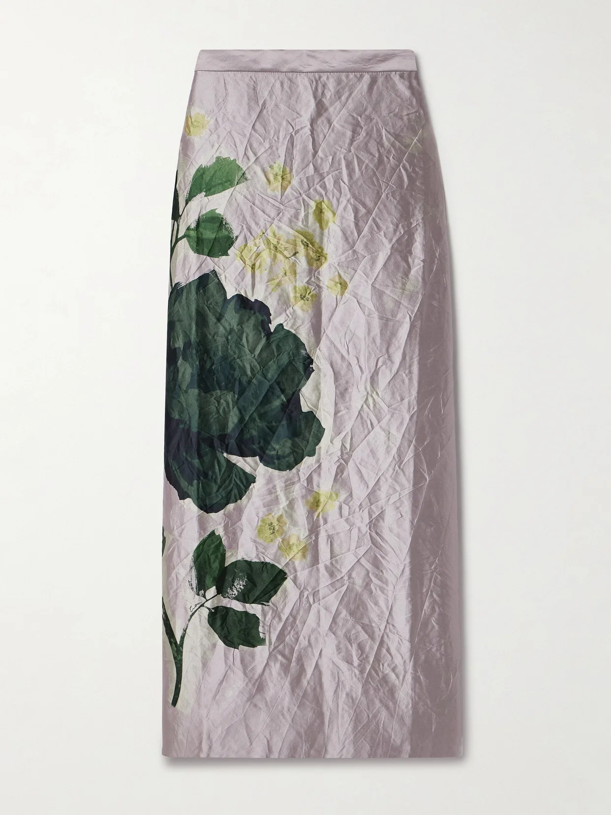 Erdem's romantic yet bold midi skirt is made from crinkled satin-twill in a classic pencil silhouette. It's printed with a contrasting floral motif and designed to sit on the waist. Style yours with a cropped sweater or crisp shirt.