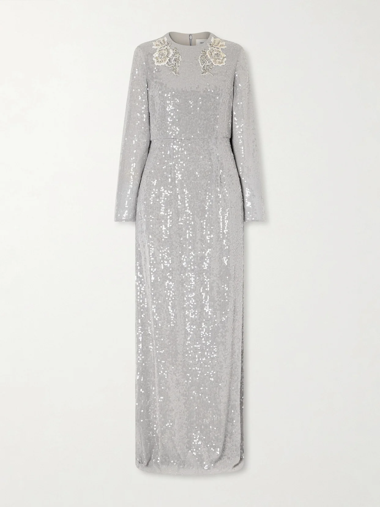 Erdem's gown is ready to catch eyes at your next event. Crafted from delicate georgette, it's adorned with crystal embroidery at the shoulders for a sparkling finish. Style yours with elegant heels.