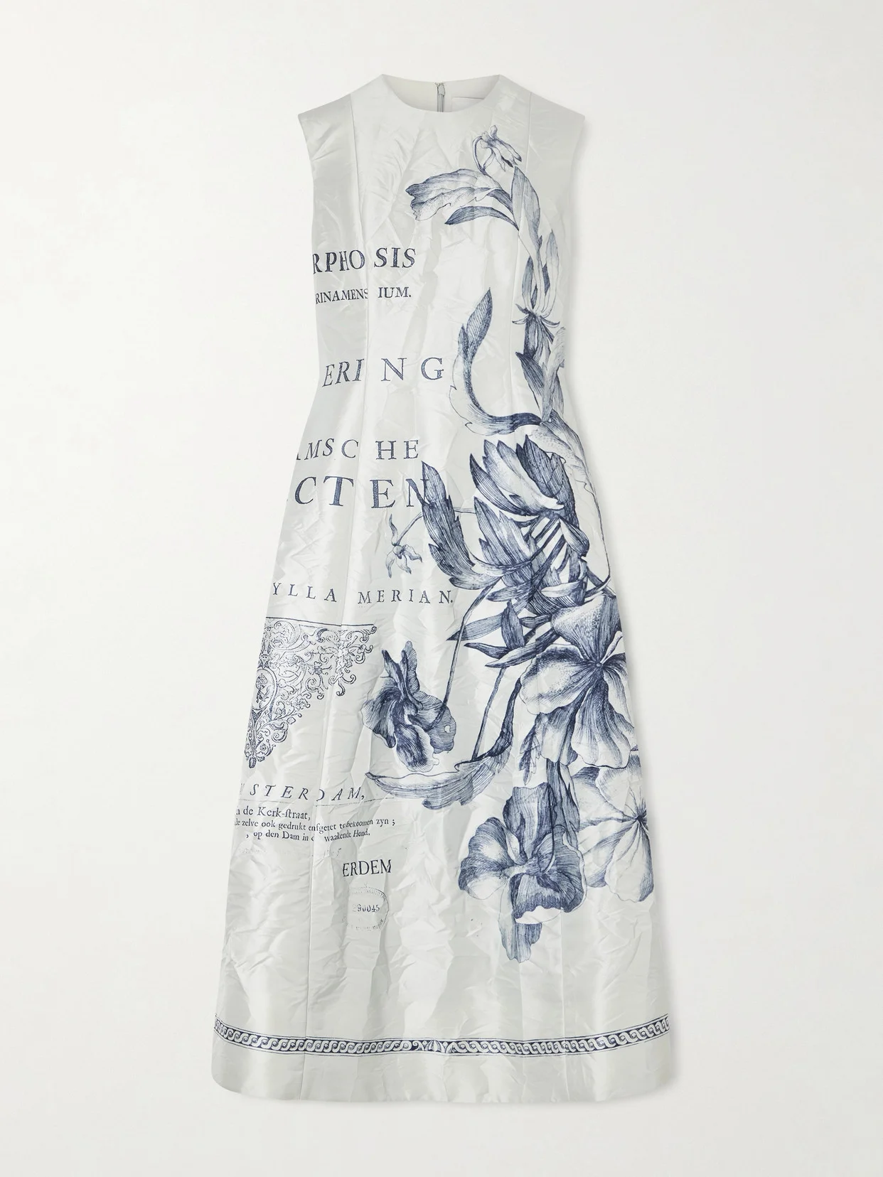 Taking inspiration from the German naturalist Marie Sibylla Merian, Erdem's dress features a beautiful print that transforms her traditional drawings into wearable art. It is cut from crinkled satin in an A-line silhouette. Style yours with point-toe pumps and a box clutch.