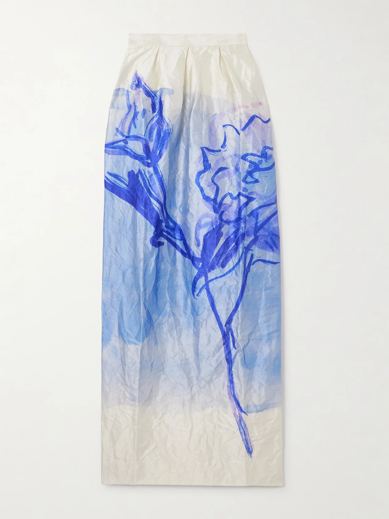Erdem's skirt is printed with oversized blooms that appear as if they've been painted on by hand. It's made from crinkled-satin flecked with metallic threads and pleated for volume through the pencil silhouette. Complement the high waist with a bustier top.