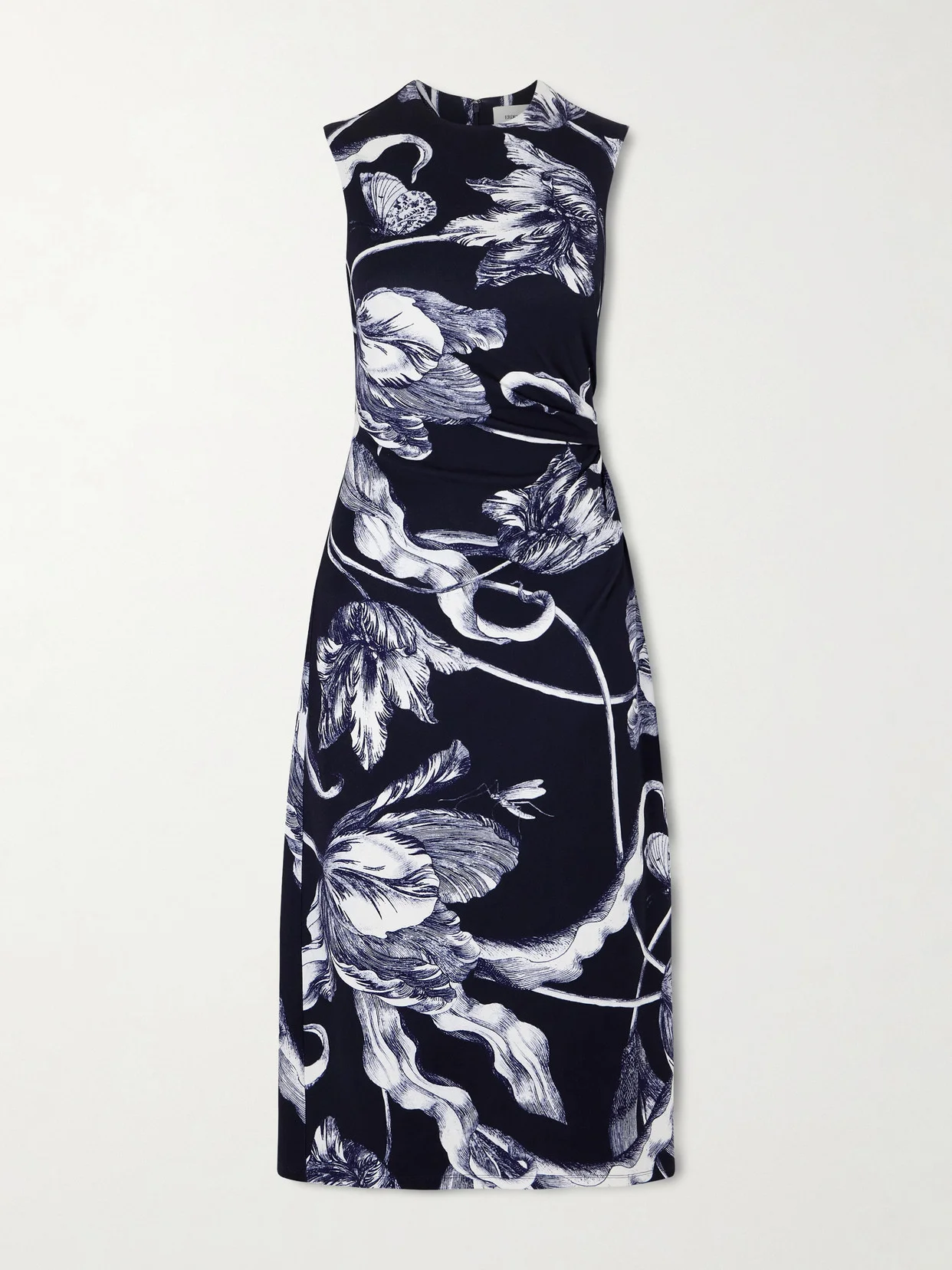Botanical illustrations are key to Edem's romantic designs. This dress is made from structured ponte with a fitted bodice and straight column skirt. It gathers at the side, gently following your curves.