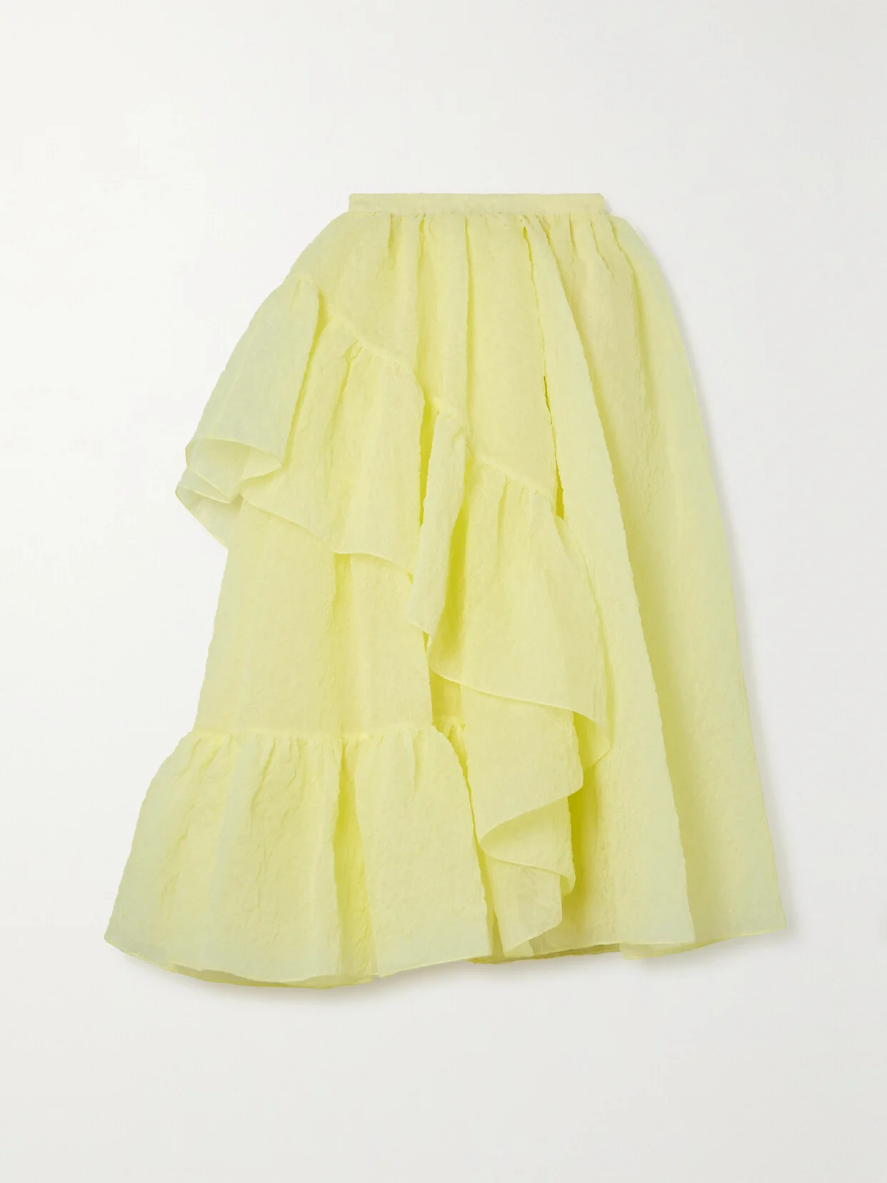 Erdem's 'Marganita' skirt is made from tiers of ruffled cloque that float effortlessly over your frame. It comes in a sunny 'Lemon' shade and falls to a midi length. Style yours with a crisp white shirt, just like it was on the Spring '23 runway.
