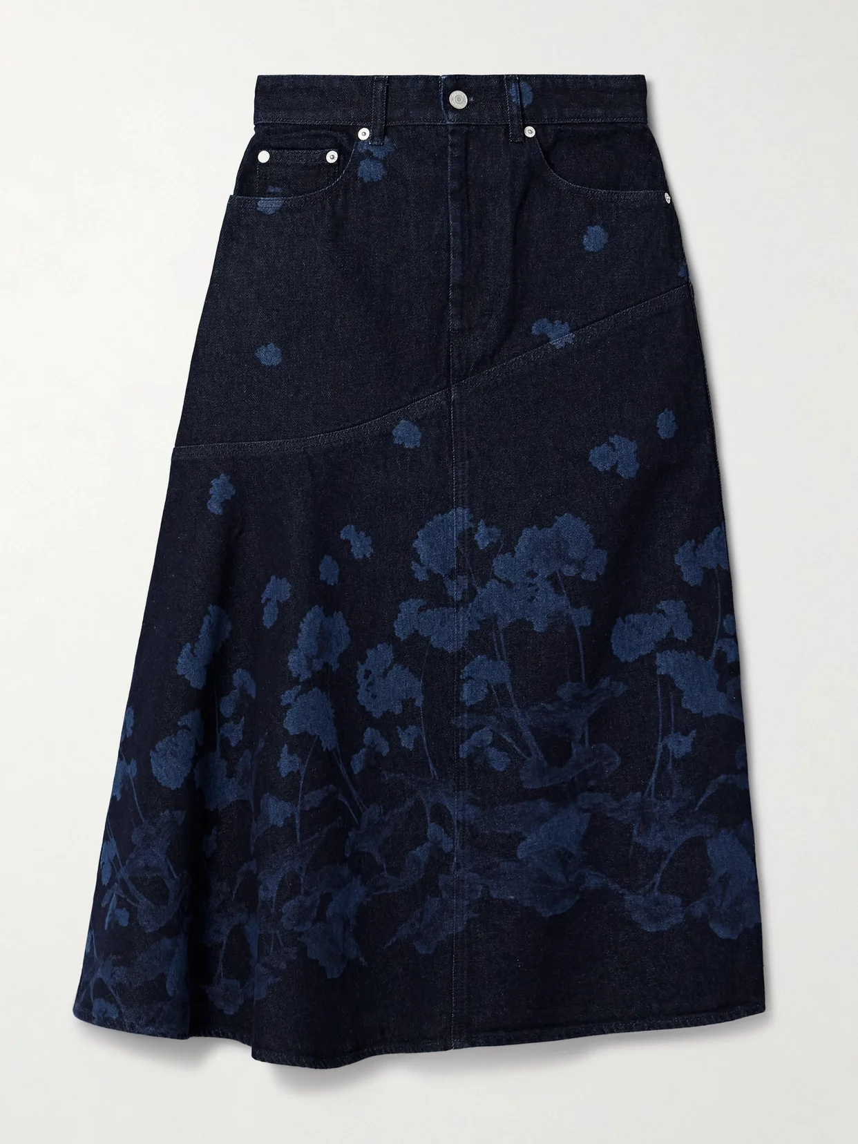 Erdem is renowned for its romantic, contemporary approach to floral motifs - the print decorating this midi skirt is reminiscent of a stroll through a lush garden after dark. It's made from panels of denim for a slightly deconstructed feel and has a high waist and floaty A-line shape.
