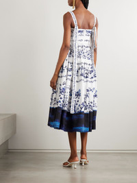 You can always count on Erdem to deliver elegance and romance. This midi dress is made from cotton-poplin that's patterned with painterly blooms and trees and has a fitted bodice that flares out to a tiered skirt. The straps adjust to your desired fit. Size & Fit - Fits true to size, however those who are between sizes should take the larger size - Those with a large bust may wish to take the next size up - Designed to be fitted at the bust and waist, loose at the hip - Mid-weight, non-stretchy fabric - Model is 180cm/ 5'11" and is wearing a UK 8 Model measurements: - Bust: 80cm/ 31.5" - Waist: 65cm/ 25.5" - Hip: 89cm/ 35" Details & Care - White and tonal-blue cotton-poplin - Concealed hook and zip fastening at back - 100% cotton - Partially lined - Machine wash - Designer color: Cyanotype Etching White