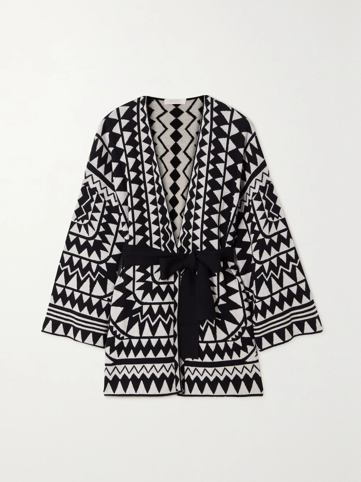 Eres' 'Tribu Constellation' cardigan is jacquard-knitted from wool and cashmere-blend to create an entrancing Aztec-inspired pattern. It has a boxy shape rounded together with a removable sash belt. Wear yours to lift an all-black outfit.