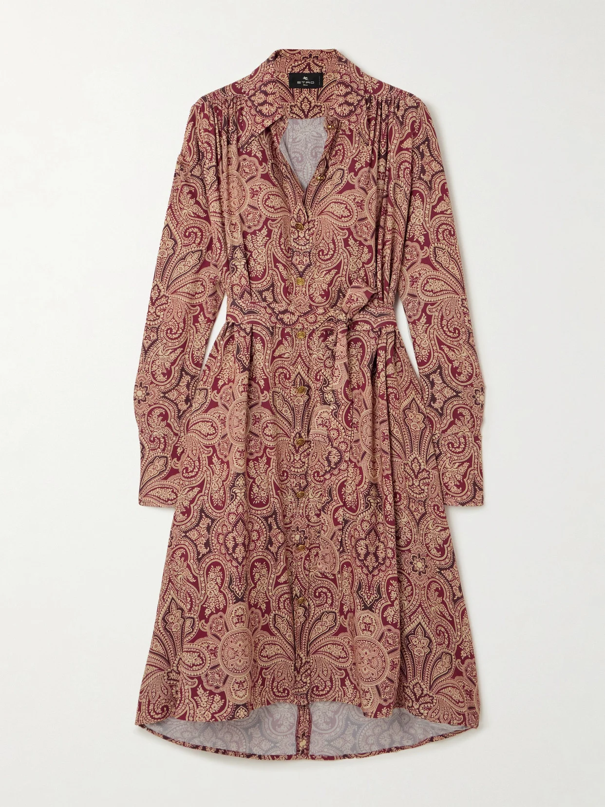 Etro's shirt dress delivers elegance with minimal effort. Made from viscose and patterned with paisley swirls, it has a tie belt to cinch the slightly loose shape and a softly draped asymmetric hem. Leave a few of the top buttons undone for a more relaxed feel.