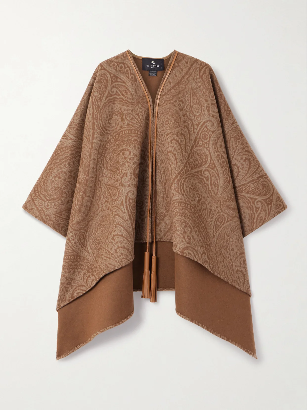 Etro's poncho is the perfect blend of bohemia and sophistication. It's made from wool-blend with a touch of soft cashmere and printed with the label's signature paisley motifs. Knot the leather tassel-tipped ties or leave them undone for a more laid-back look.