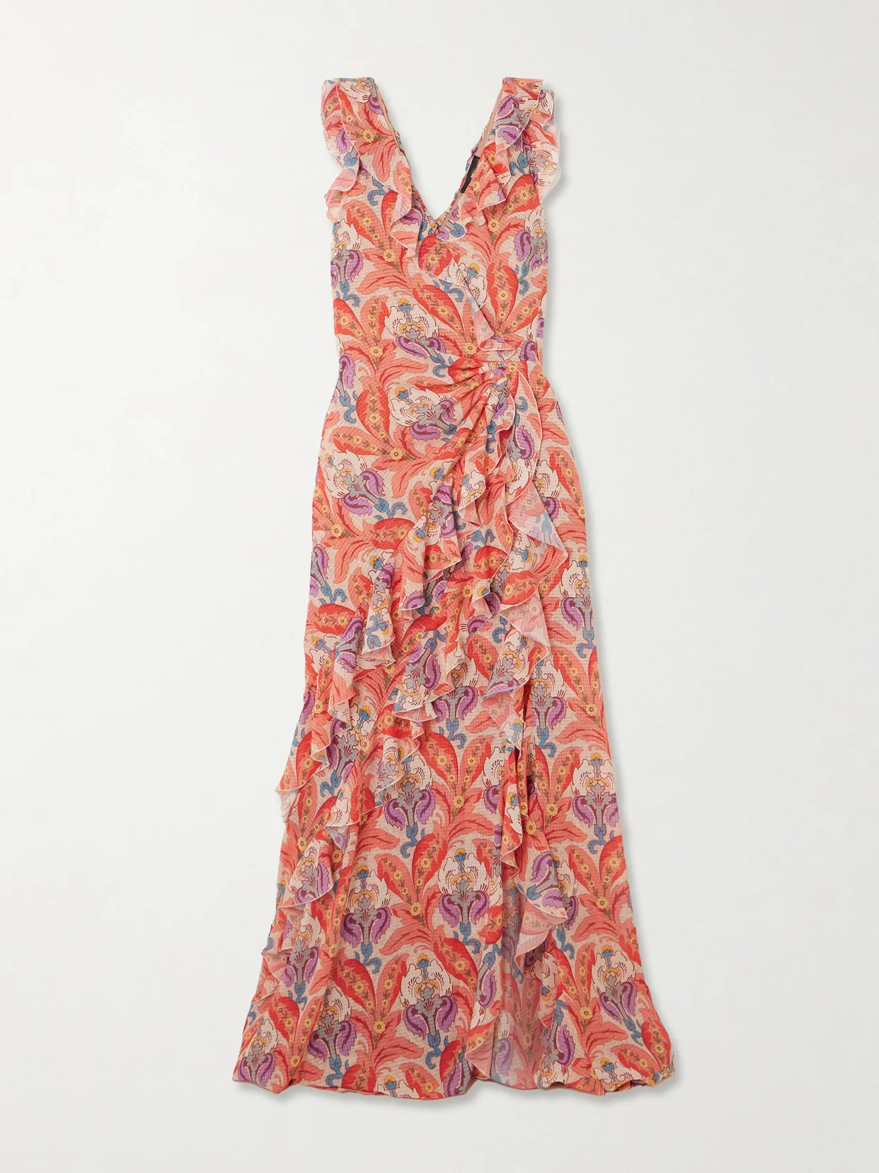 Open-back Ruffled Printed Crepe De Chine Maxi Dress