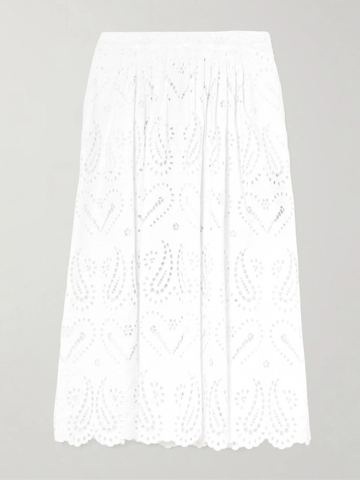Pleated Scalloped Broderie Anglaise Cotton-blend Poplin Midi Skirt