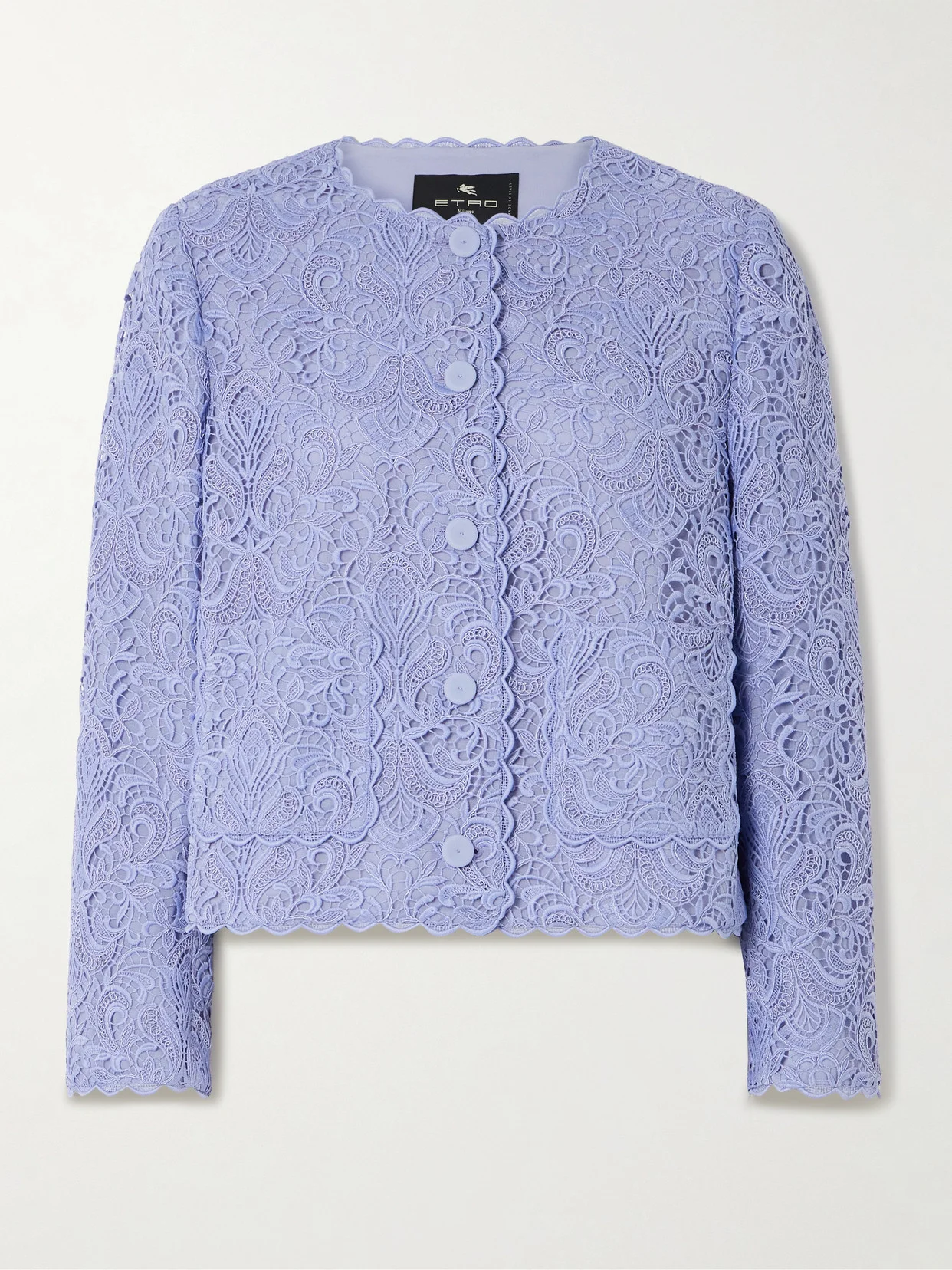 Etro's collections combine bohemian style with elegance. This jacket is made from corded lace, lined with chiffon to temper the sheerness and has pretty scalloped trims.
