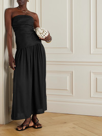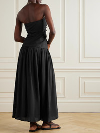 Hedy strapless gathered linen and voile maxi dress Black