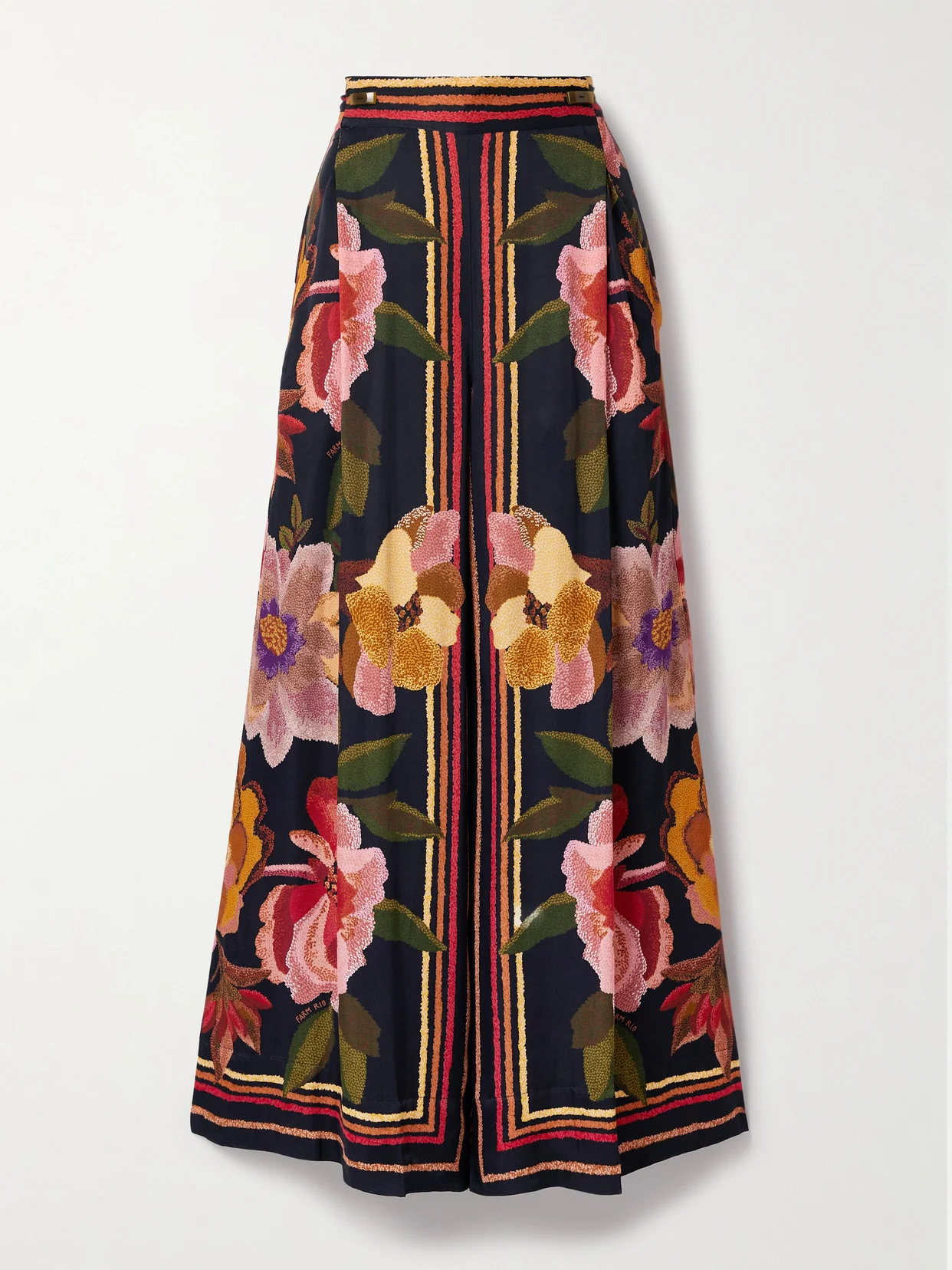 An optical illusion of sorts, Farm Rio's pants are cut from fluid satin that's printed to look like chenille. Patterned with vibrant flowers, they have a flowy, wide-leg shape emphasized a pleated, wrap-effect waist.