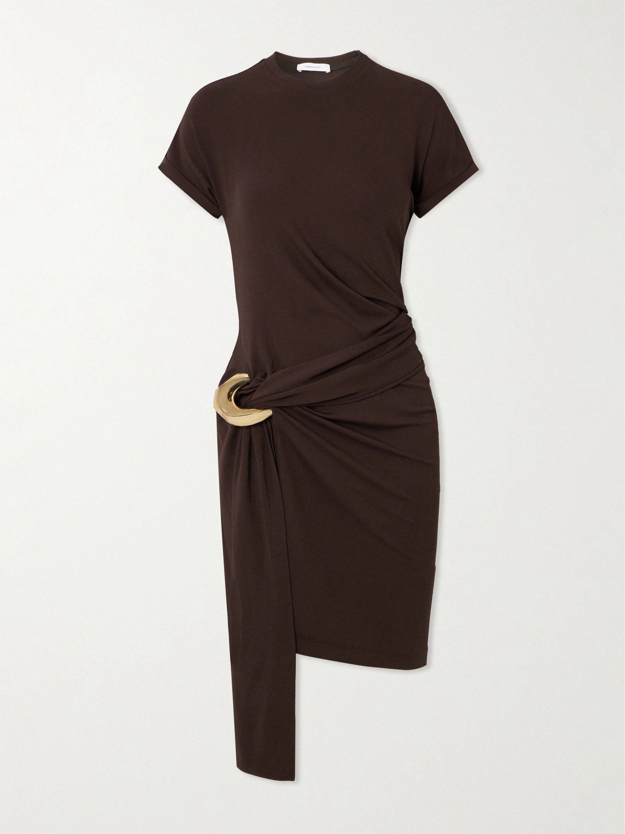 As seen on Ferragamo's Spring '24 runway, this mini dress is cut for a slim fit from stretch-jersey. It's draped along the side and has a sash at the hip that loops through a gold-tone ring.