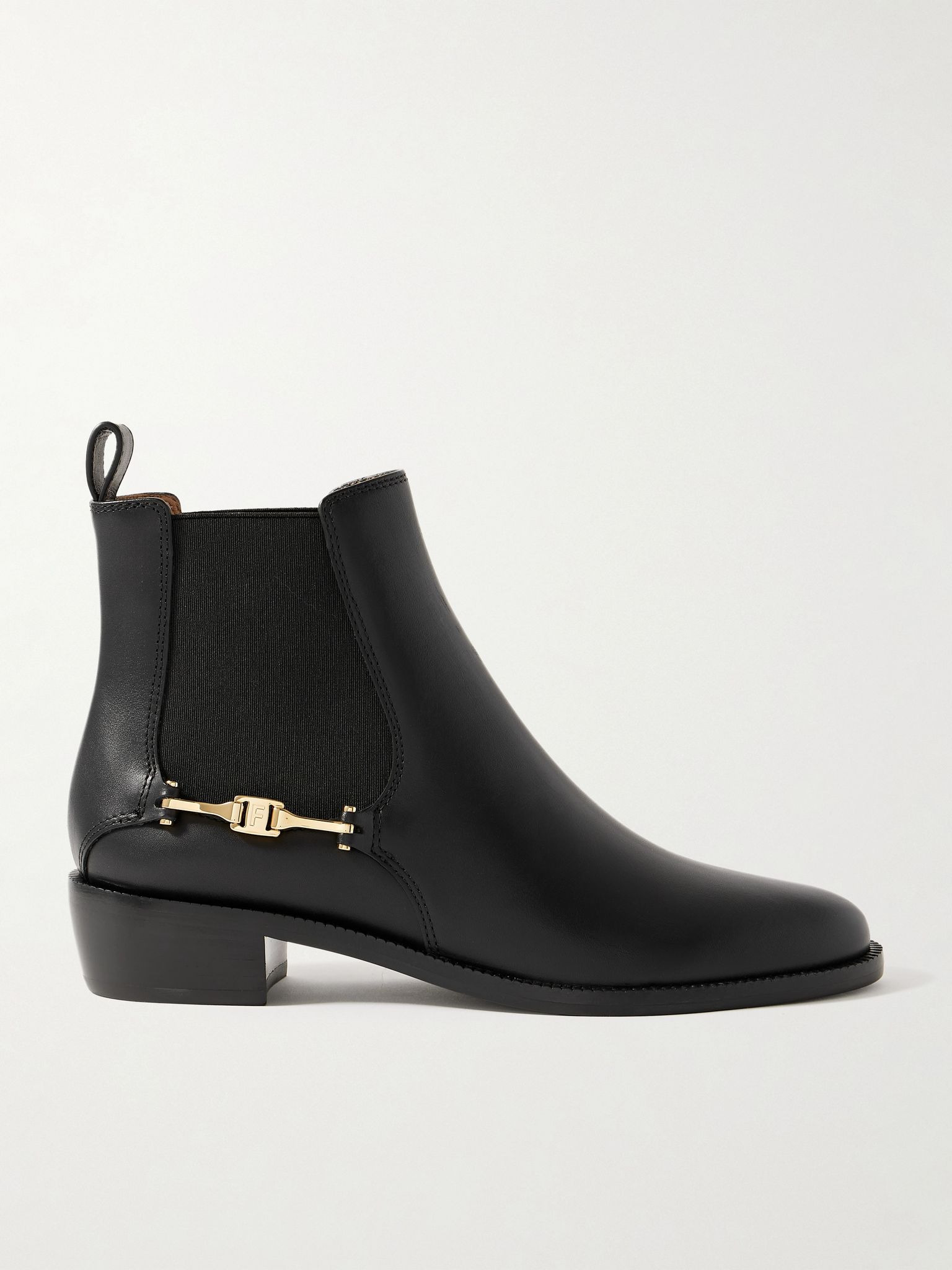 Ferragamo's Chelsea boots have gold-tone logo hardware at the heels inspired by those on classic riding styles. They've been made in Italy from black leather and are fitted with elasticated panels for easy on and off. Size & Fit - Fits true to size, take your normal size - US sizing Details & Care - Heel measures approximately 25mm/ 1 inch - Black leather (Cow) - Pull on