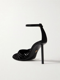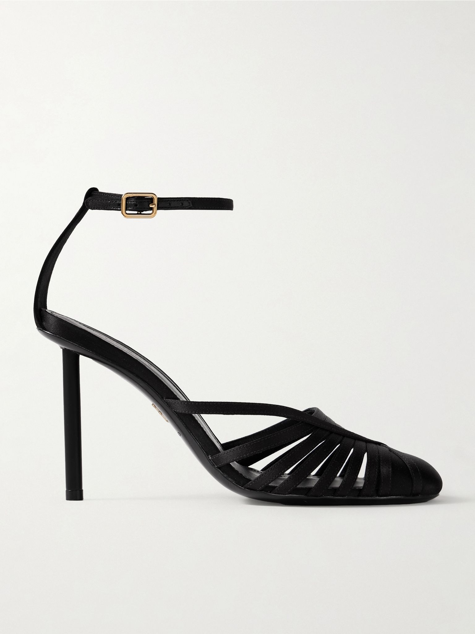 Ferragamo's 'Ermelia' pumps are inspired by glamorous styles from the 1920s. They've been made in Italy from strips of lustrous satin and rest on slim 95mm heels. Size & Fit - Fits true to size, take your normal size - US sizing Details & Care - Heel measures approximately 95mm/ 4 inches - Black satin - Buckle-fastening ankle strap