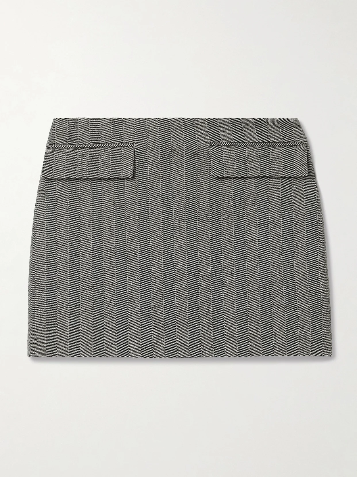 The micro-mini length of Ferragamo's skirt is a key trend throughout the brand's Fall ‘25 collection. It's tailored from herringbone wool-blend that creates a subtle stripe motif from afar and fitted with flap front welt pockets. Style yours with an elegant blouse and pumps.