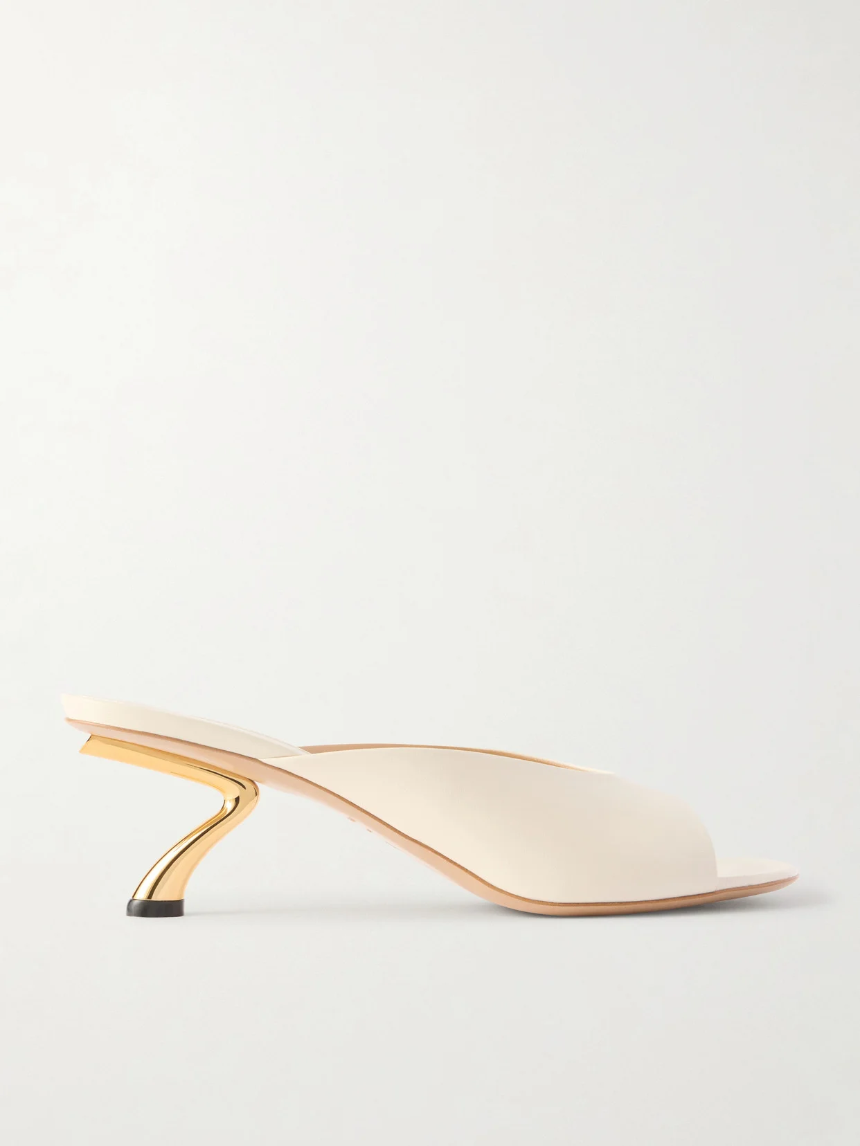 Sculptural shapes define Ferragamo's shoe collection. These 'Igea' mules are crafted from supple leather and rest on the brand's signature S-shaped heels. Highlight the gold-tone detail with cropped pants and mini-length hems.
