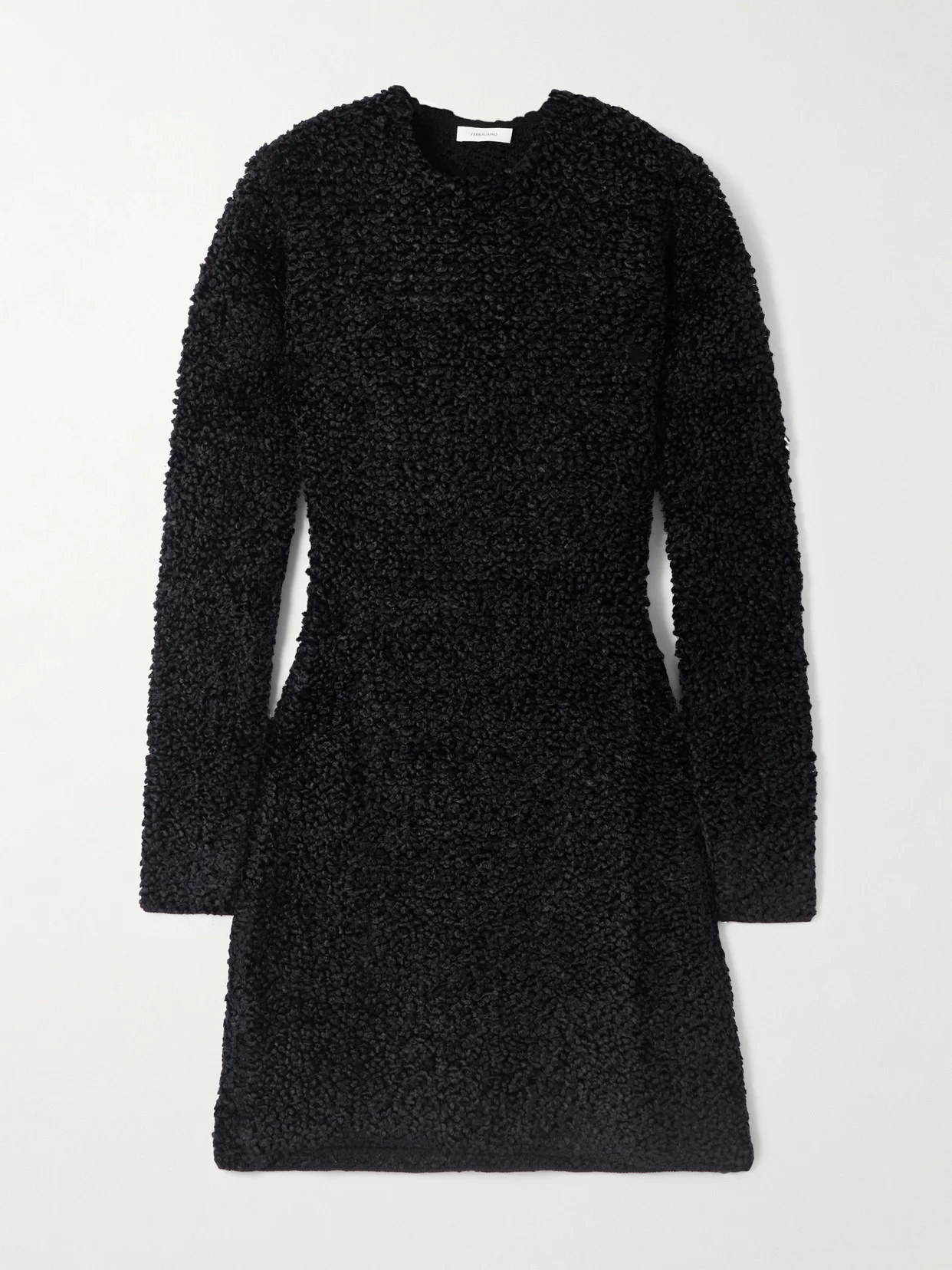 Ferragamo's mini dress has been made in Italy from plush jacquard-knit boucle that has a sumptuously soft texture. It's cut for a close fit with a classic round neckline. Keep the styling simple - black pumps or ballet flats will work.