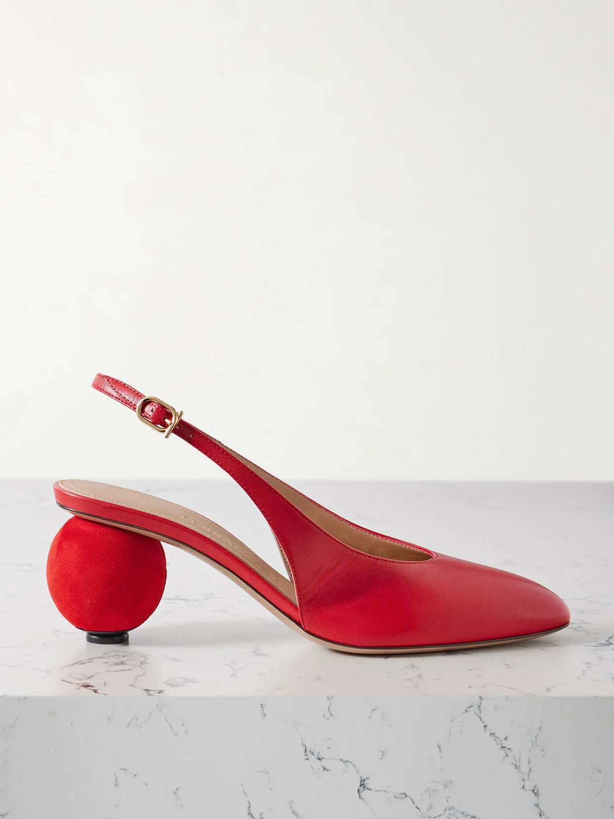 Inspired by archival designs, Ferragamo's 'Tessie' pumps rest on spherical suede heels. They've been made in Italy from soft leather and have almond toes and slingback straps.