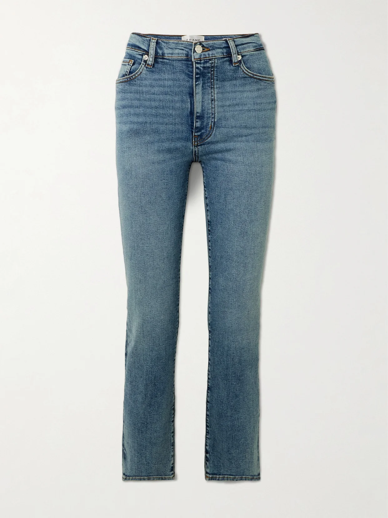FRAME's 'Le Sleek' jeans are named for their simple, straight shape. They're cut from stretch-denim in a versatile 'Vice' wash and have a high-rise fit. Wear yours with a cropped shirt or tank.