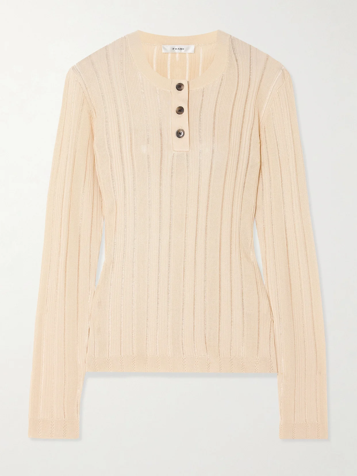Between seasons, it's basic instinct to reach for styles like FRAME's Henley top. It's rib-knitted from soft yarns and interspersed with delicate openwork to create a laddered effect and reveal a hint of skin. Pair yours with denim or leather pants.