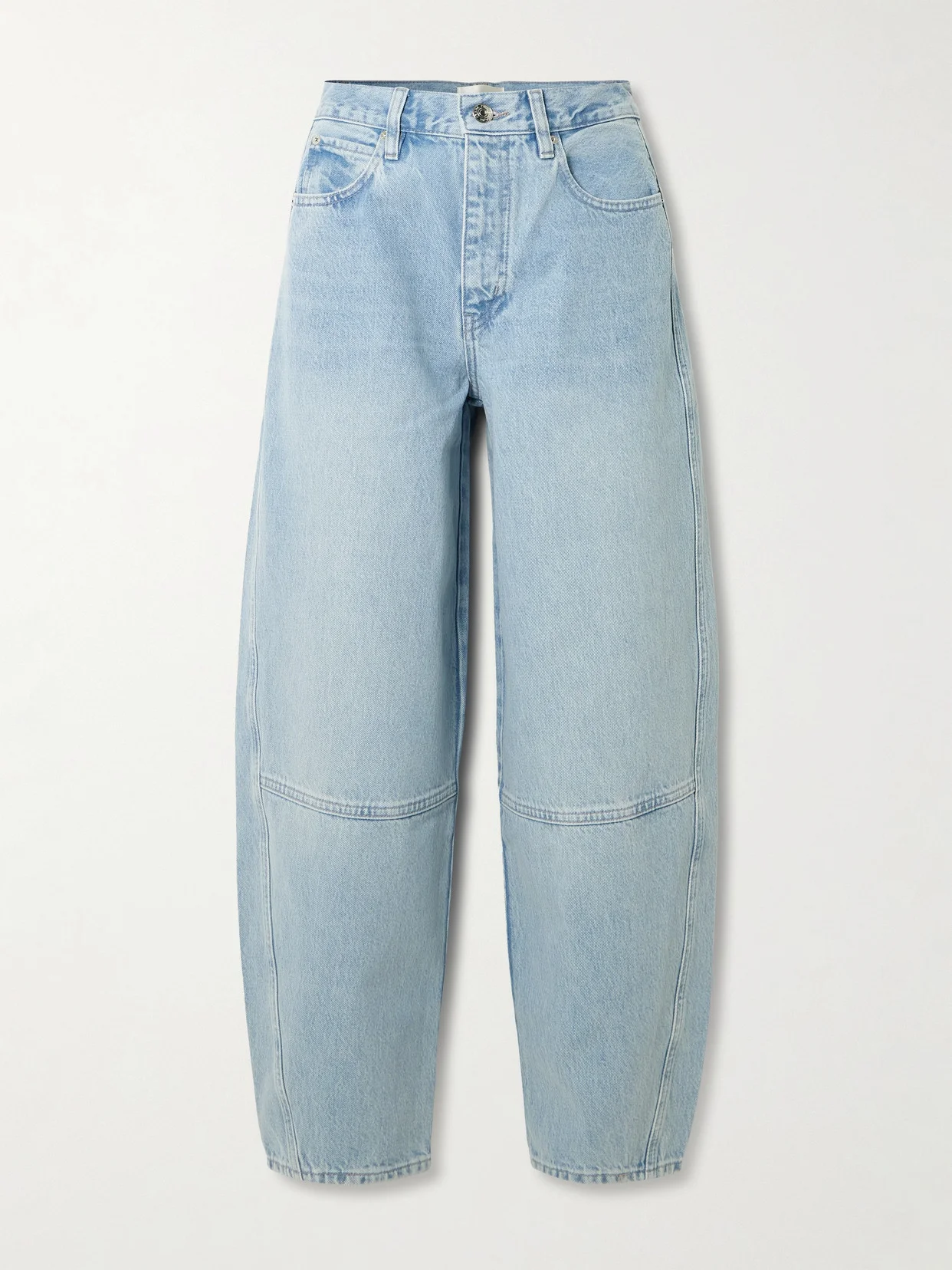Fans love FRAME's jeans for how well they fit. This 'The Twisted' style is paneled from non-stretch denim that holds the curved shape through the leg. They're cut to sit high on your waist and have a slight crop that works well with ballet flats and loafers. Lower-Impact Materials. This product is made using at least 50% lower-impact materials or ingredients. Find out more about our NET SUSTAIN criteria here.