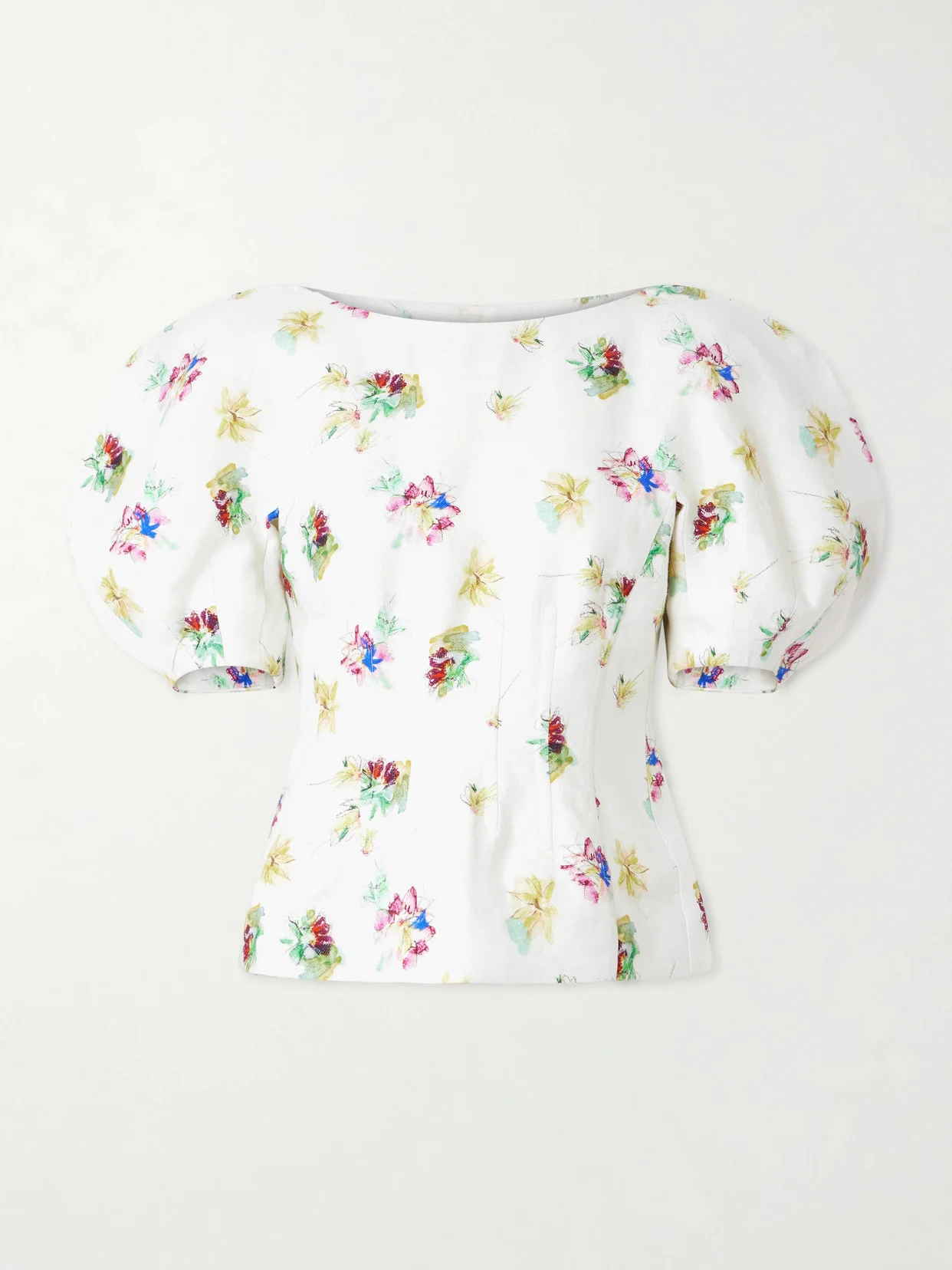 Ayelet Puff Sleeve Mia's Flowers Top in Ivory Multi Printed Linen Twill