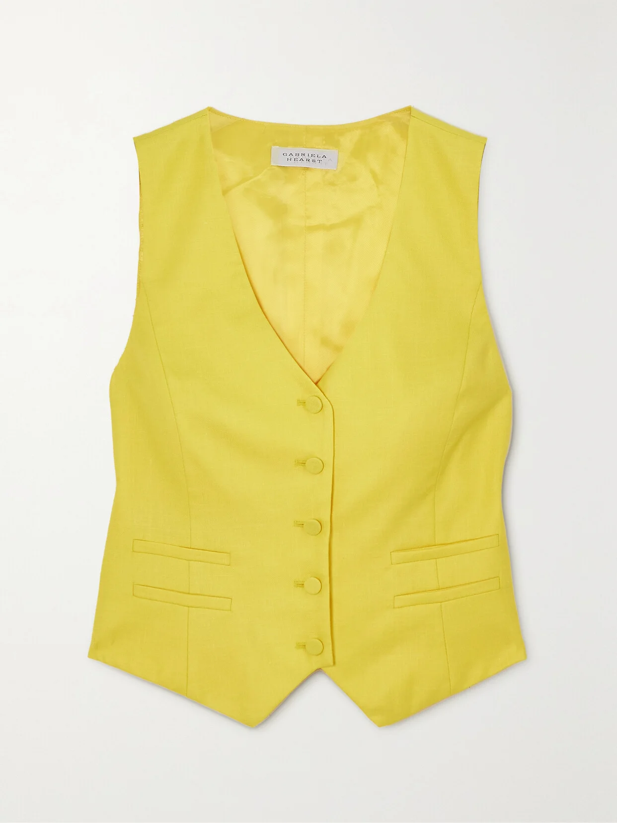 Gabriela Hearst's 'Coleridge' vest comes in a 'Cadmium Yellow' hue that feels so joyful. Tailored in Italy from soft wool, silk and linen-blend, it has a slightly loose fit and is complete with covered buttons, welt pockets and a buckled tab at the back. Style yours with the matching pants and layered necklaces.