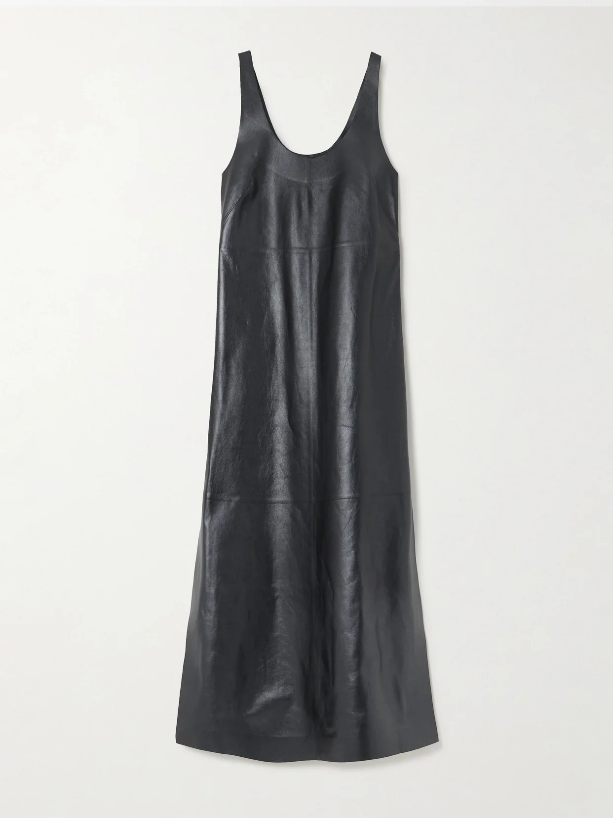 Gabriela Hearst's 'Ellson' midi dress is sharply cut from leather for a statement look, even with its minimalist silhouette. Debuted on the Spring '24 runway, it skims over the frame and has a scooped neckline to frame your favorite pendant.