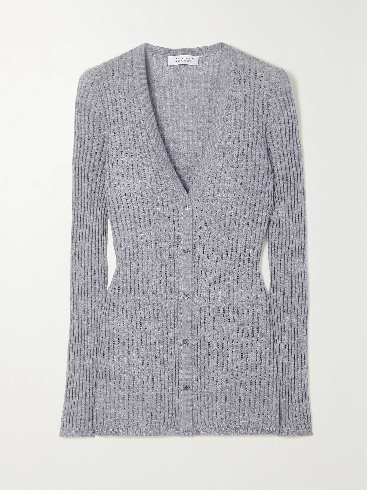 Emma Pointelle Cardigan in Heather Grey Silk Cashmere
